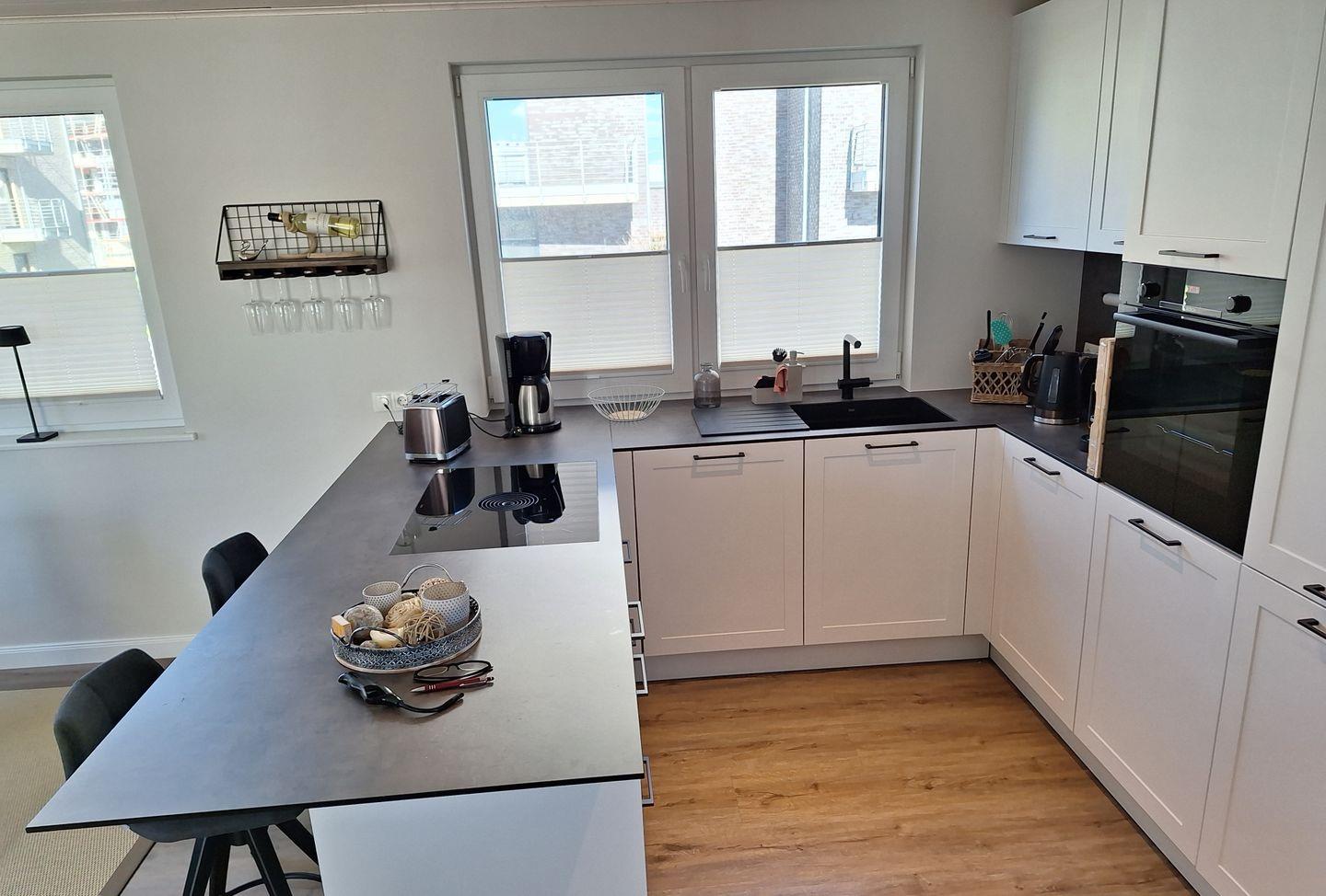 Die Küche ist in den Wohnbereich integriert und funktional ausgestattet. Sie bietet Dir unter anderem ein Induktionskochfeld, einen zusätzlichen Gefrierschrank sowie eine Nespresso-Espressomaschine und ermöglicht Dir eine unkomplizierte Selbstversorgung während Deines Aufenthalts.