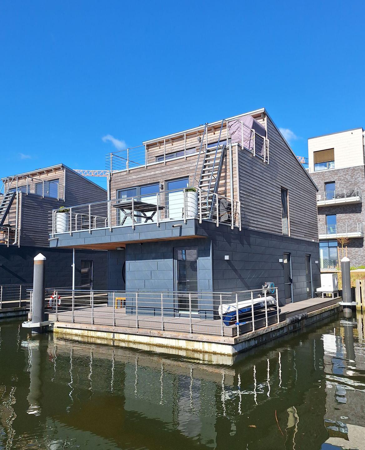 Wasserhaus im Pionierhafen - Waschmaschine, Dachterrasse, TV, PKW-Stellplatz