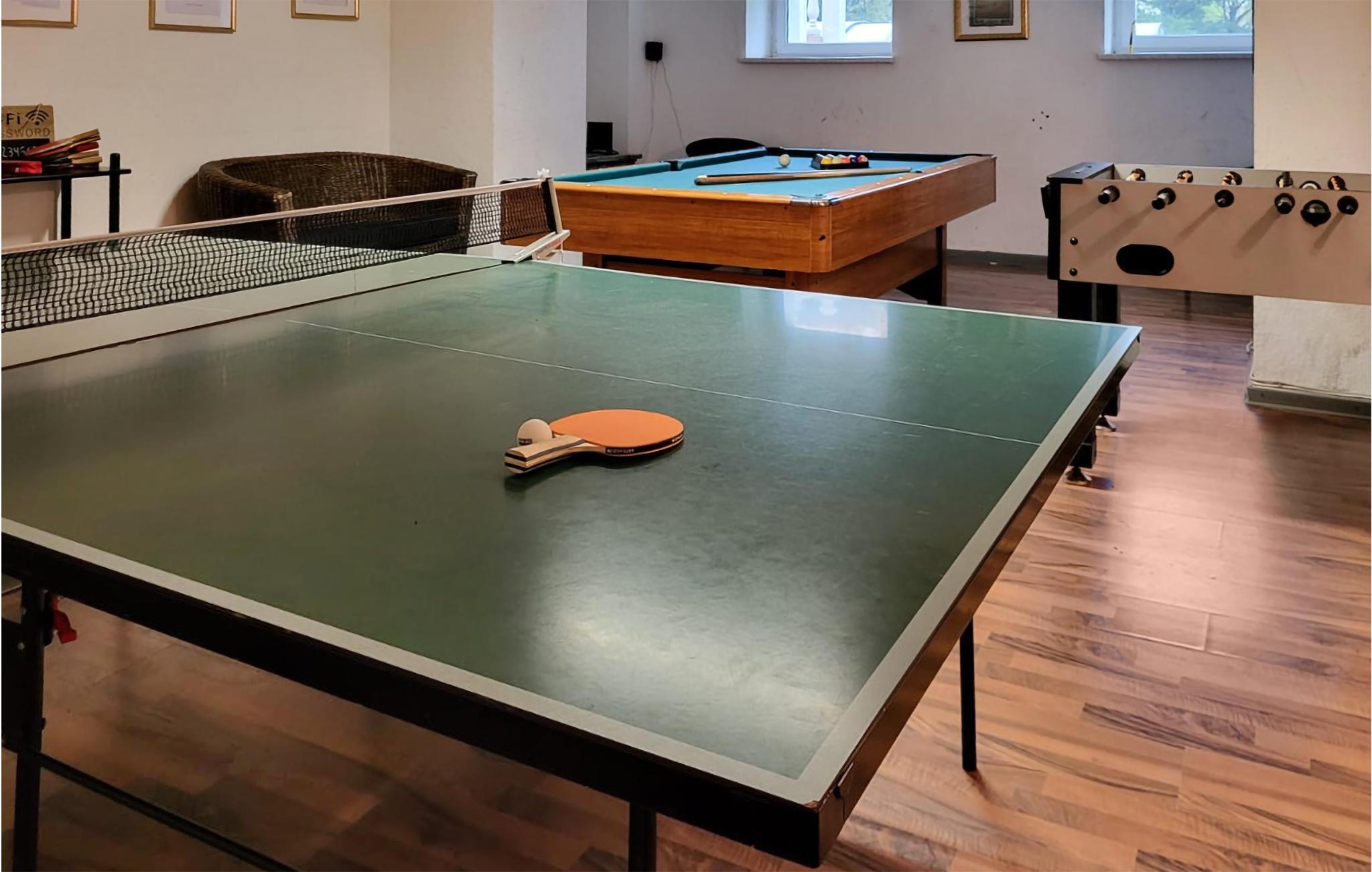 Im Untergeschoss steht auch ein gemütliches Homekino mit großer Leinwand zur Verfügung, so dass garantiert keine Langeweile aufkommen kann, falls das Wetter einmal nicht mitspielen sollte. Auf dem 18.000 m² großen Grundstück befinden sich ein kleiner Teich und ein Pavillon mit Gartenstühlen und Grill. Hier können Sie mit der ganzen Gruppe herrlich entspannen und das schöne Wetter genießen. Die Schaukel und im Sommer ein Außenpool sind perfekt für Kinder geeignet, während die Badetonne Entspannung verspricht. Das Objekt wird mit Fernwärme aus einer Biogas-Anlage beheizt. Eine eigene Rasenfläche bietet ausreichend Platz für Fußball sowie Fruchtbäume stehen zur Verfügung. Fitnessraum vorhanden.