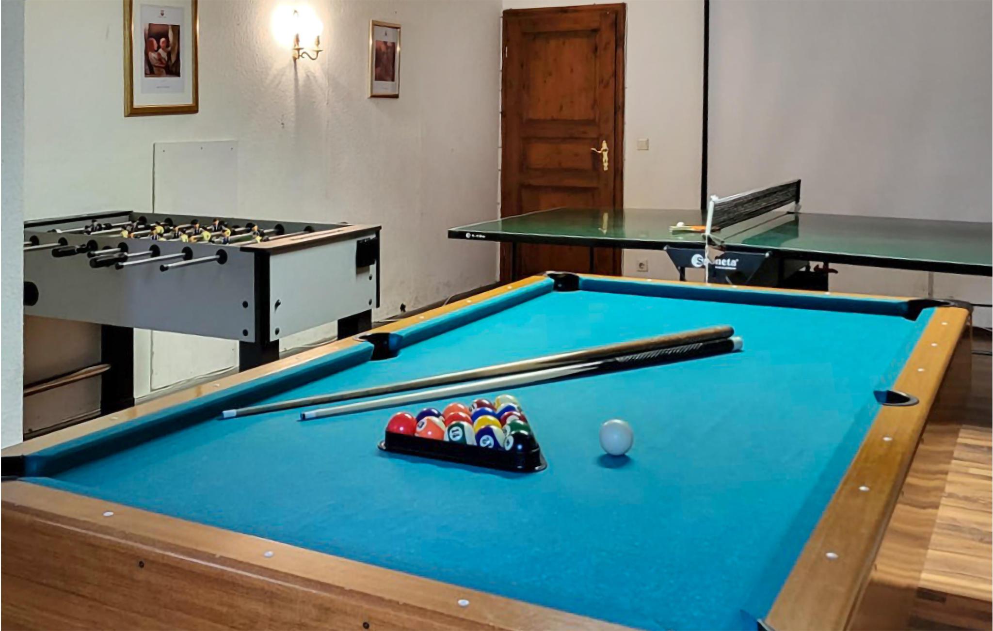 Das Feriendomizil verfügt über 9 Suiten. In der 1. Etage befindet sich ein Festsaal mit einem 'Schwedenzimmer', um gemeinsam Tee zu trinken, Karten zu spielen oder fernzusehen. Vom Saal aus gelangt man auf eine große Terrasse mit herrlichem Blick auf die parkähnliche Naturlandschaft. Von hier aus kann man eine phantastische Vogelwelt belauschen und dazu ein Glas Wein bei Sonnenuntergang genießen. Im Souterrain befinden sich ein Gewölbe-Speiseraum, eine komplett ausgestattete Küche, sowie eine kleine Bar, um am Abend mit Freunden zu feiern. Hier finden Sie auch das Billardzimmer, eine Tischtennisplatte und ein TV-Zimmer mit separater Treppe zum 'Schwedenzimmer'. Sauna, Duschen und WC's befinden sich ebenfalls dort.