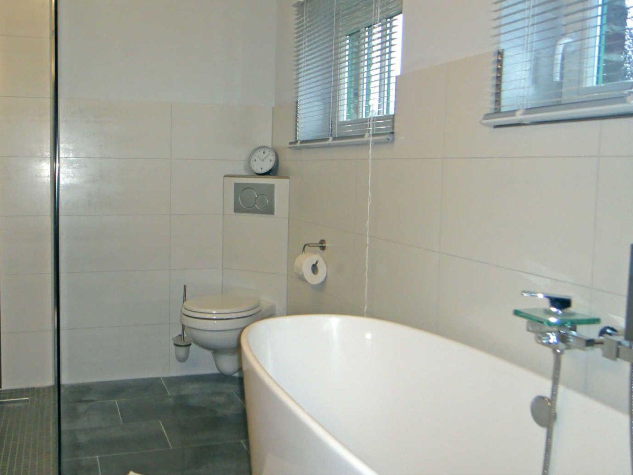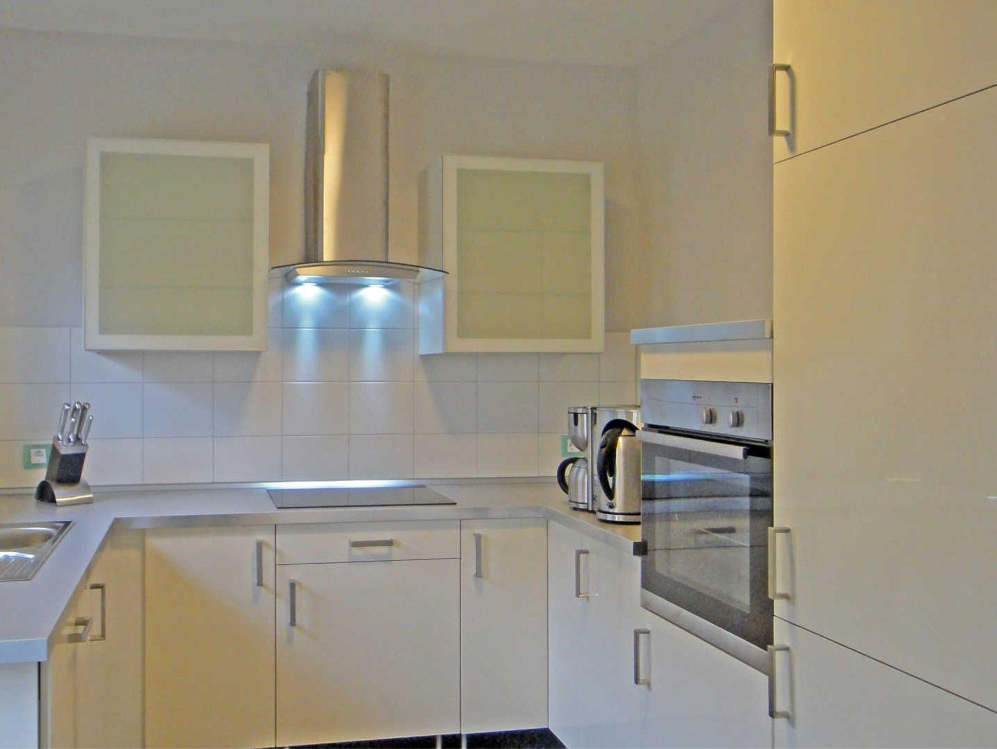 Im Erdgeschoss stehen Ihnen außerdem eine geräumige, moderne Küche (Ceranfeld, Backofen, Mikrowelle, Kühlschrank, Geschirrspüler, Kaffeemaschine, Toaster, Eierkocher sowie hochwertiges Kochgeschirr und Besteck) sowie ein luxuriöses Bad zur Verfügung. Dieses ist mit MineralgussWanne, ebenerdiger Komfortdusche, WC, Handtuchtrockner, ProfiFöhn, Spiegelschrank und beleuchtetem Kosmetikspiegel ausgestattet; großformatige Fliesen betonen den hochwertigen Stil. Alle Räume im Erdgeschoss verfügen über Fußbodenheizung.