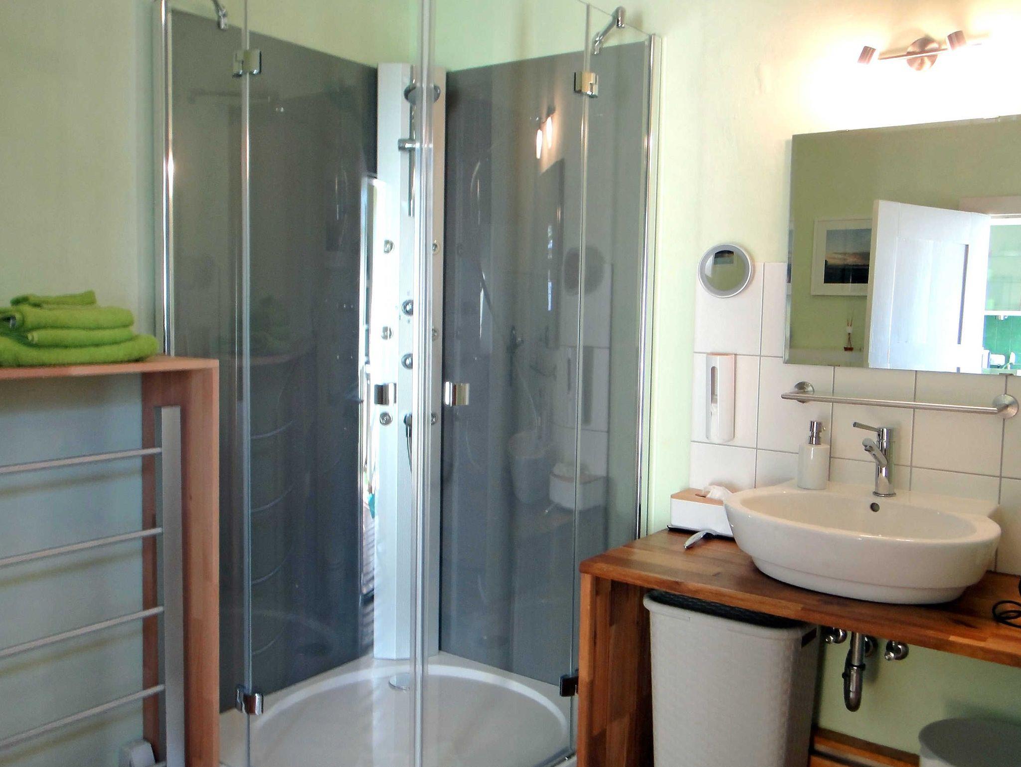 WLAN und Tresor stehen ebenfalls zur Verfügung. Im gemeinsamen Hauswirtschaftsraum im Nebengebäude können Sie Waschmaschine, Kondenstrockner und eine Bügelstation mitnutzen ? praktisch bei längeren Aufenthalten. Nach Absprache lassen sich vorhandene Fahrräder für Tagestouren kostenfrei nutzen. Bettwäsche und Handtücher sind inklusive. Ein „Komfort-Service“ (Zwischenreinigung alle 3-4 Tage) ist gegen Aufpreis möglich. Ebenso können auf Wunsch ausgewählte Bio- bzw. Selbsterzeuger-Produkte aus der Region gegen Aufpreis organisiert werden.