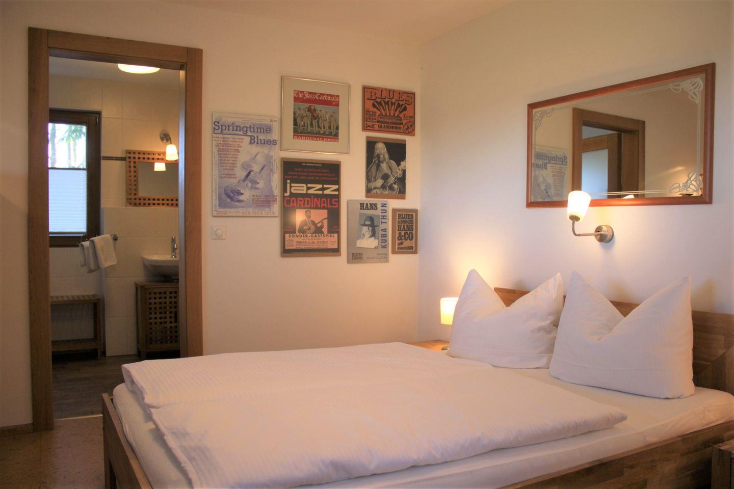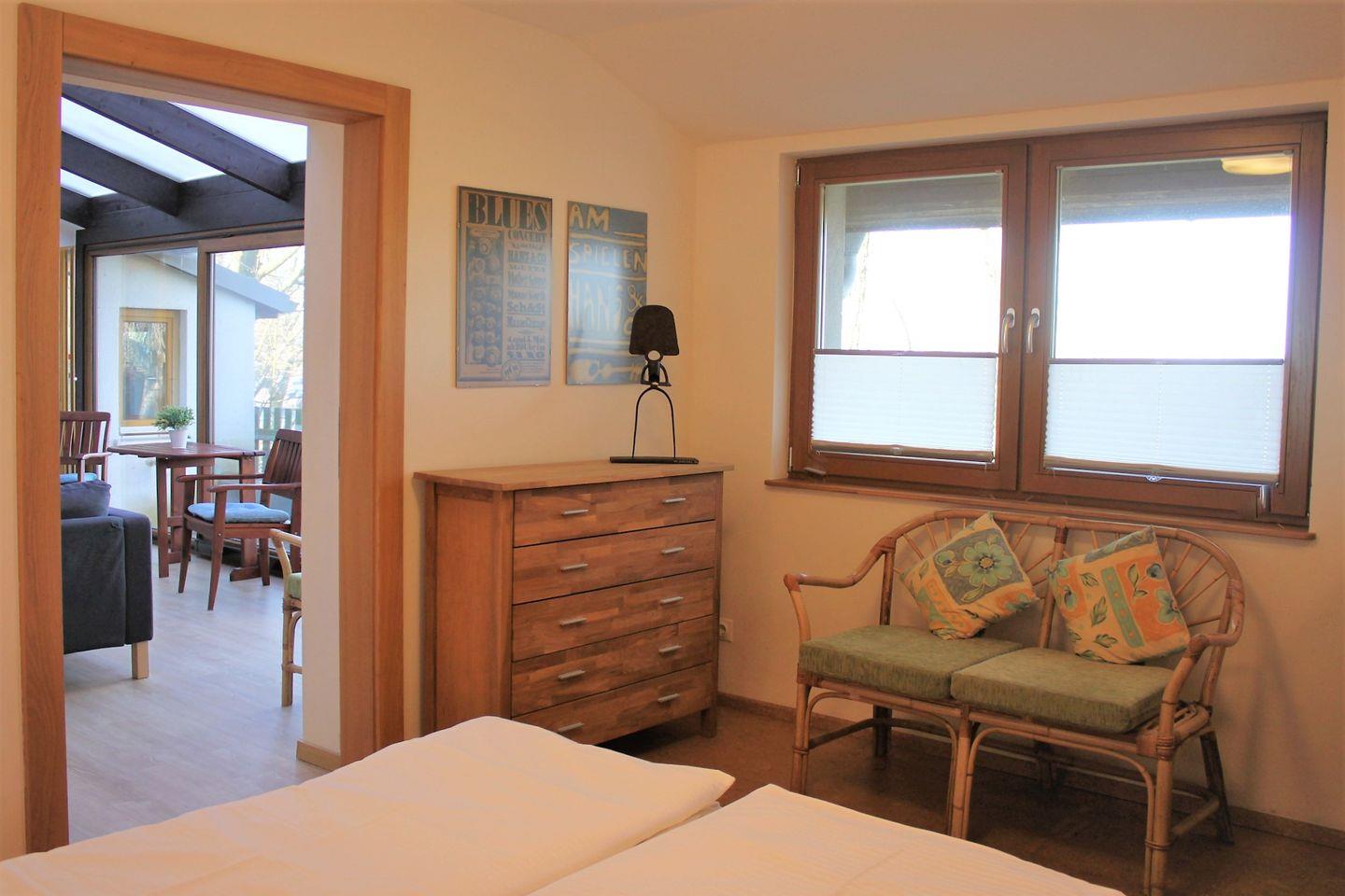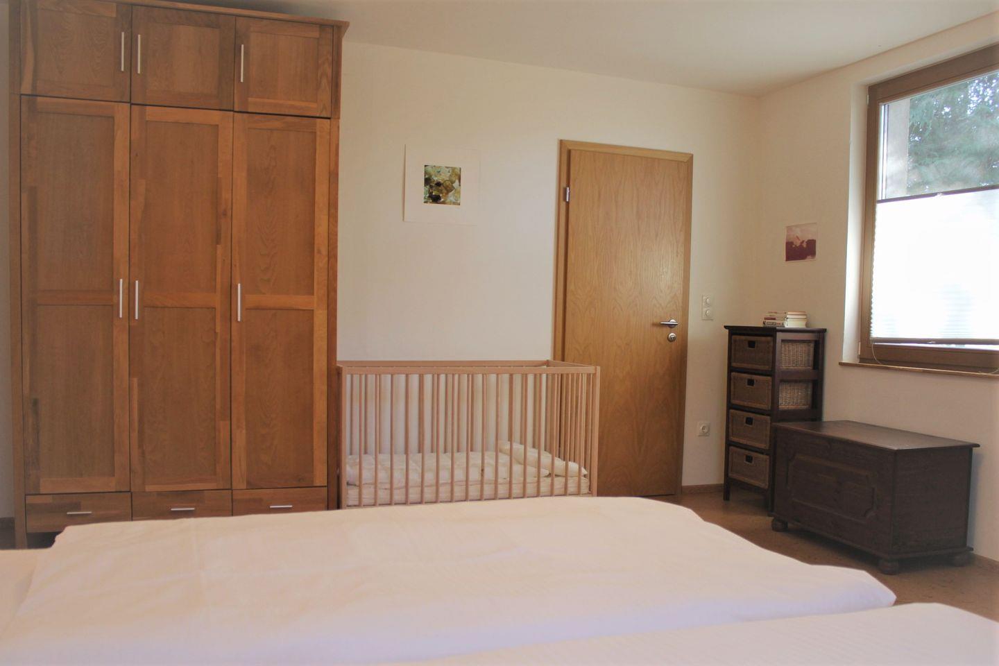 Die zwei separaten Schlafzimmer sind jeweils mit einem Doppelbett ( 180x200cm mit 2 getrennten Matratzen und 140x200 cm mit durchgängiger Matratze) und Stauraum für Ihre Garderobe möbliert. In einem Zimmer steht Ihnen außerdem ein Kinderbett zur Verfügung.
