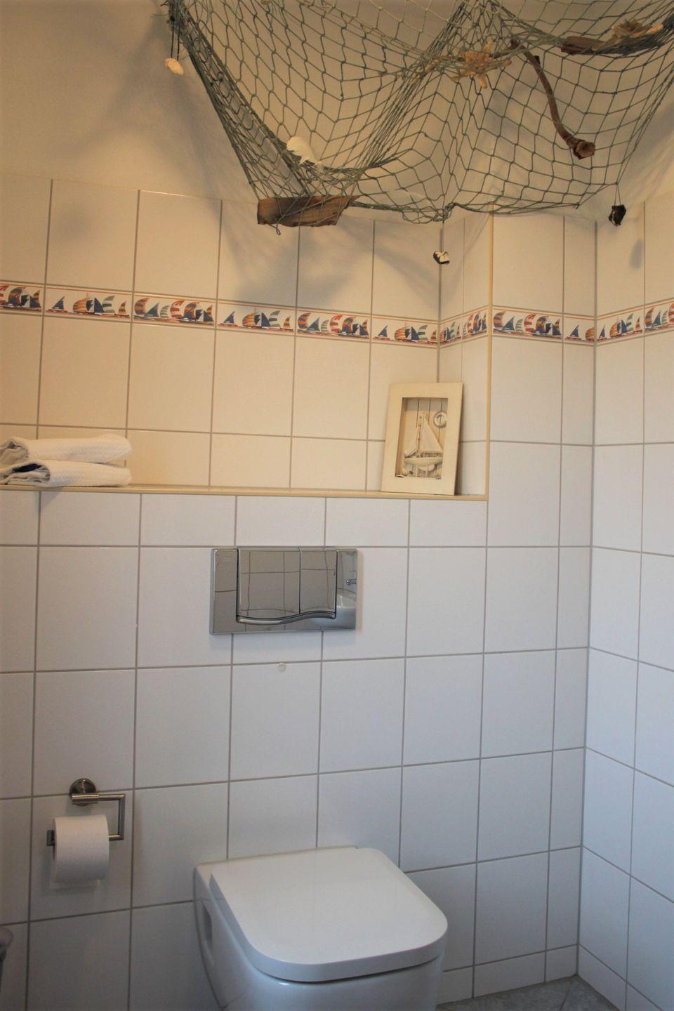 Im Erdgeschoss des Hauses verfügen Sie außerdem über ein Gäste-WC. Über eine Treppe gelangen Sie in die obere Etage des Hauses, wo sich die zwei separaten Schlafräume und das Hauptbadezimmer befinden. Die Schlafzimmer sind entweder mit einem Doppelbett oder drei Einzelbetten und jeweils einem Kleiderschrank möbliert und sorgen für erholsame Nächte.