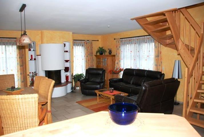 Dieses Ferienhaus bietet für bis zu 6 Personen auf ca. 92qm Wohnfläche ausreichend Platz um einen erholsamen Urlaub zu verbringen. Der großzügige Wohn- und Essbereich ist kombiniert und mit einer gemütlichen Sofaecke, Esstisch, Kamin und TV-Gerät ausgestattet. Die Küche ist ebenfalls in den Raum integriert und verfügt über alle technischen Geräte, wie z.B. Geschirrspüler, Kühlschrank mit Gefrierschrank, Herd mit Backofen, Mikrowelle, Kaffeemaschine und vieles mehr.