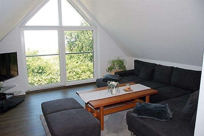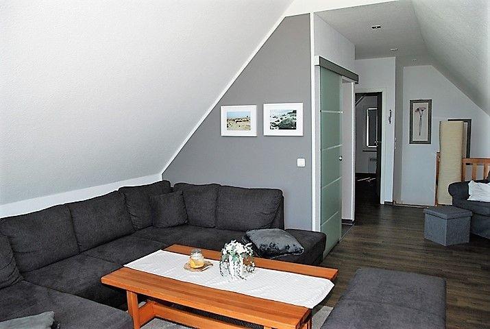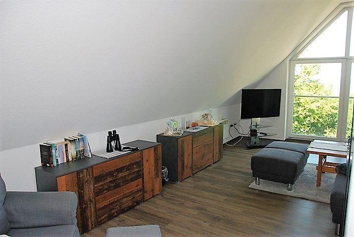 Hier verfügen Sie über einen weiteren, großzügigen Wohnbereich mit großer Sofalandschaft mit TV-Gerät und traumhaftem Blick auf den Strand und die Ostsee.