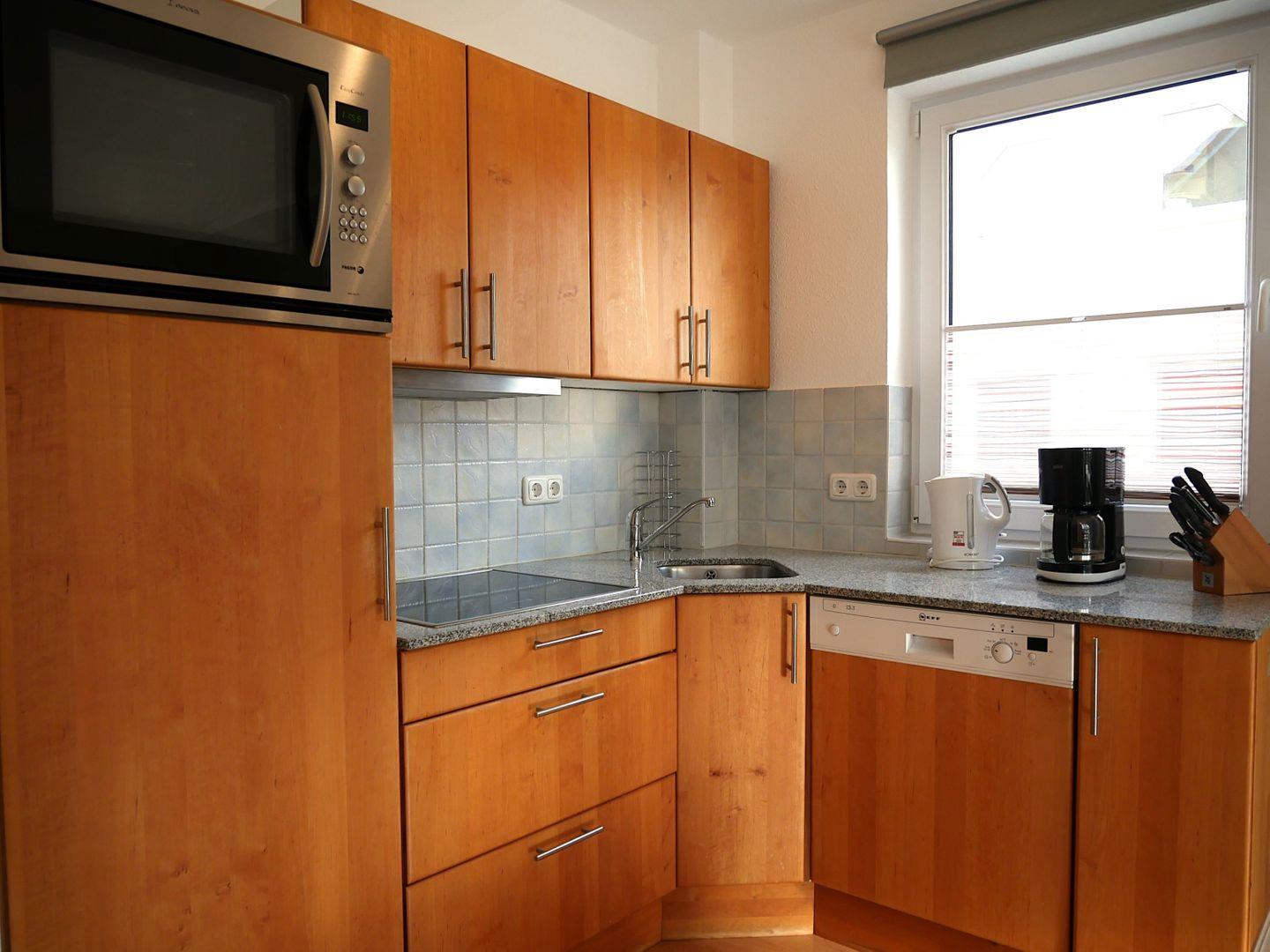 Die offene Küche ist komplett ausgestattet und bietet Ihnen alle Annehmlichkeiten, sich selbst zu versorgen. Unter anderem bietet die Küche eine Mikrowelle, einen Herd, eine Kaffeemaschine, eine Spülmaschine, einen Wasserkocher und einen Toaster.