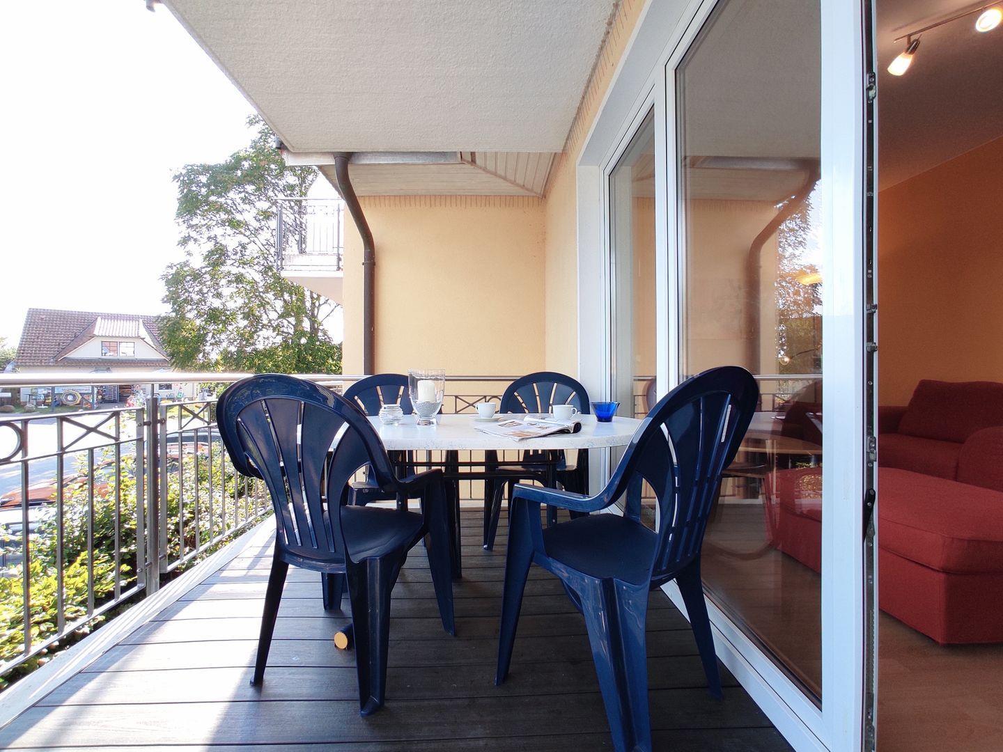 Der möblierte Balkon (mit Insektenschutztür) lädt dazu ein, die frische Luft zu genießen und sich bei einem Kaffee oder einem Glas Wein zu entspannen.