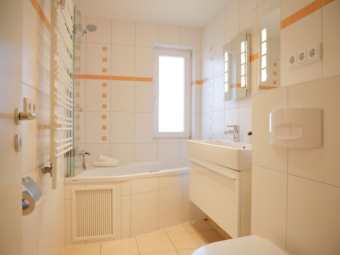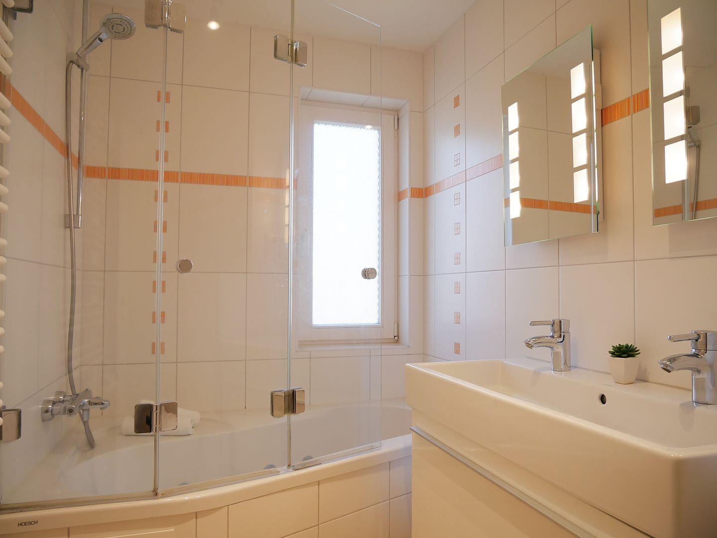 Im Badezimmer erwartet Sie eine erholsame Überraschung - eine Badewanne mit Whirlfunktion, die Ihnen die perfekte Entspannung ermöglicht. Zusätzlich verfügt das Badezimmer über eine Fußbodenheizung, um auch an kühleren Tagen angenehm warm zu sein.