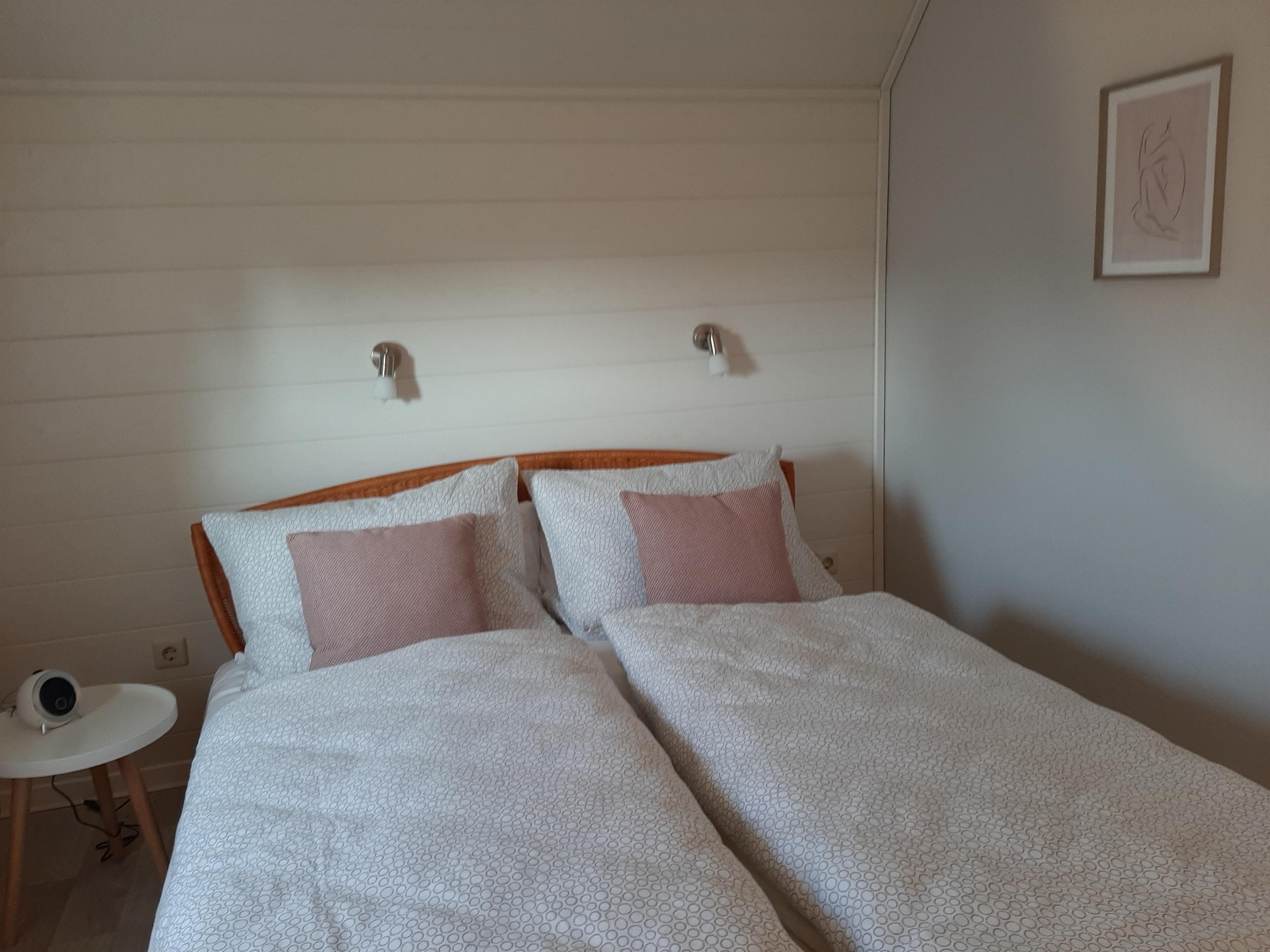 Das ruhig gelgene Schlafzimmer im OG mit Doppelbett (160 x 200 cm) ist der perfekte Rückzugsort, um nach einem erlebnisreichen Urlaubstag neue Kraft zu tanken.