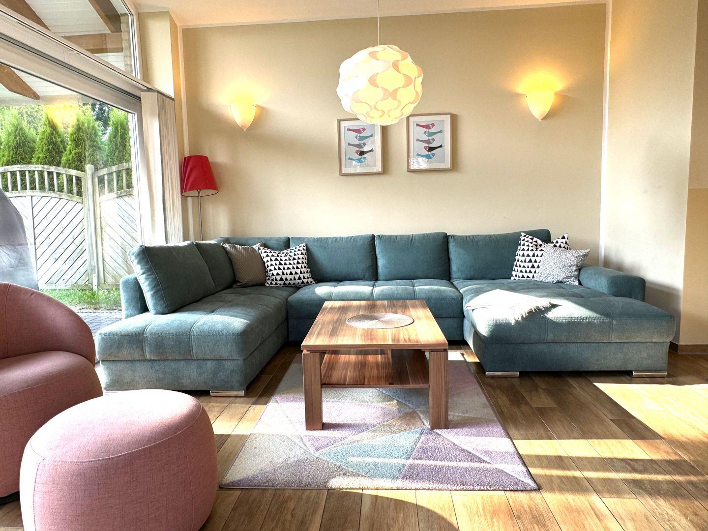 Freuen Sie sich auf einen großzügigen, lichtdurchfluteten Wohn- und Essbereich mit modernem Flachbildfernseher – ideal für entspannte Abende mit der Familie. Die hochwertig ausgestattete Küche lässt keine Wünsche offen. An kühleren Tagen sorgt eine Fußbodenheizung im gesamten Haus für behagliche Wärme.