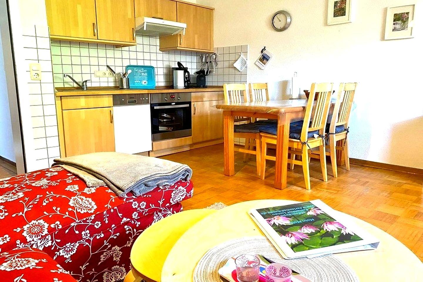 Gemütliche Ferienwohnung Am Schwimmbad in Schwienkuhl mit Terrasse, Garten und direktem Zugang zum Wellnessbereich.