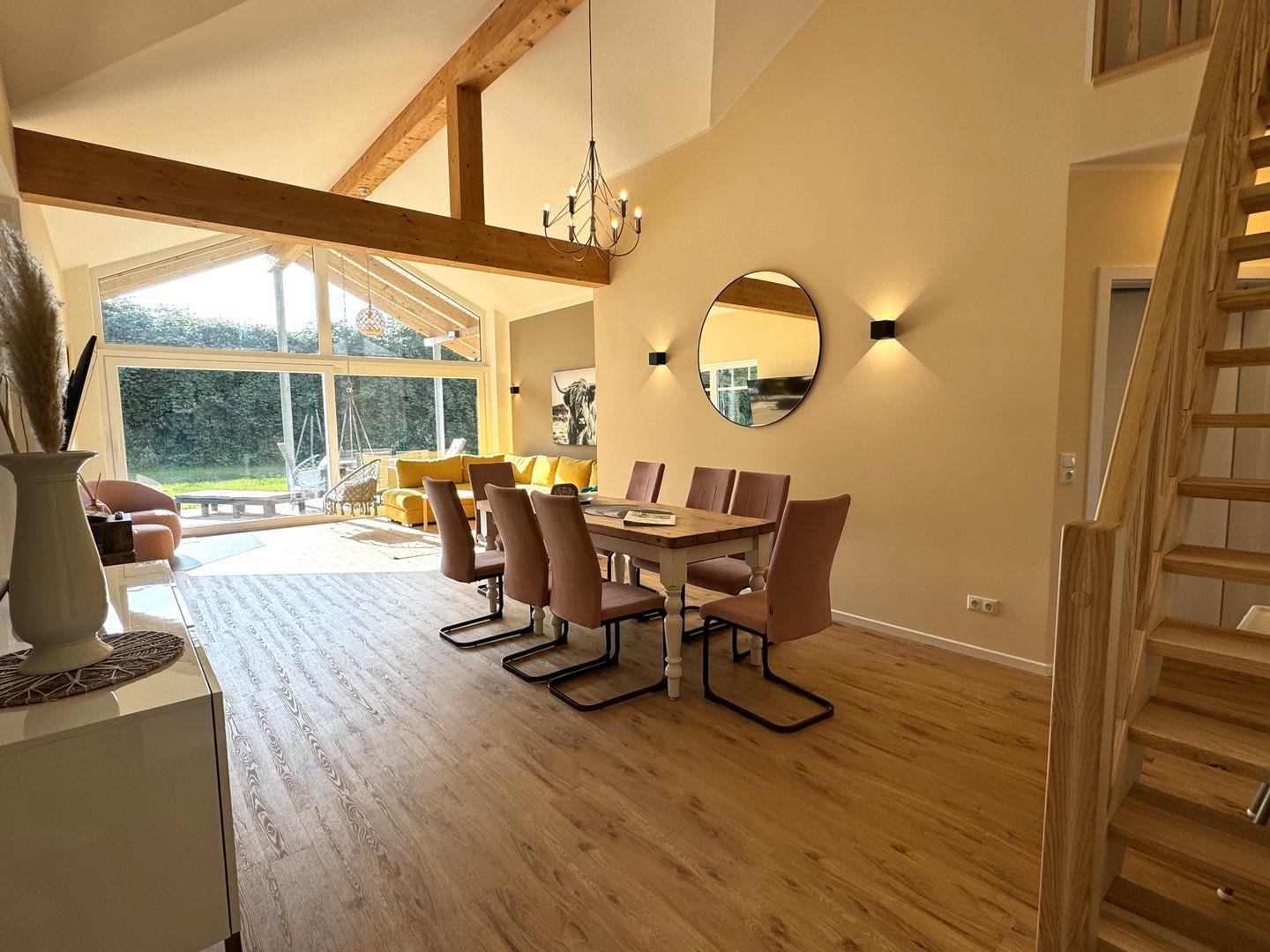 Das 5-Sterne Wellnesshaus Löwenzahn bietet luxuriöse Erholung mit Sauna, Whirlpool und Kamin in idyllischer ländlicher Umgebung.