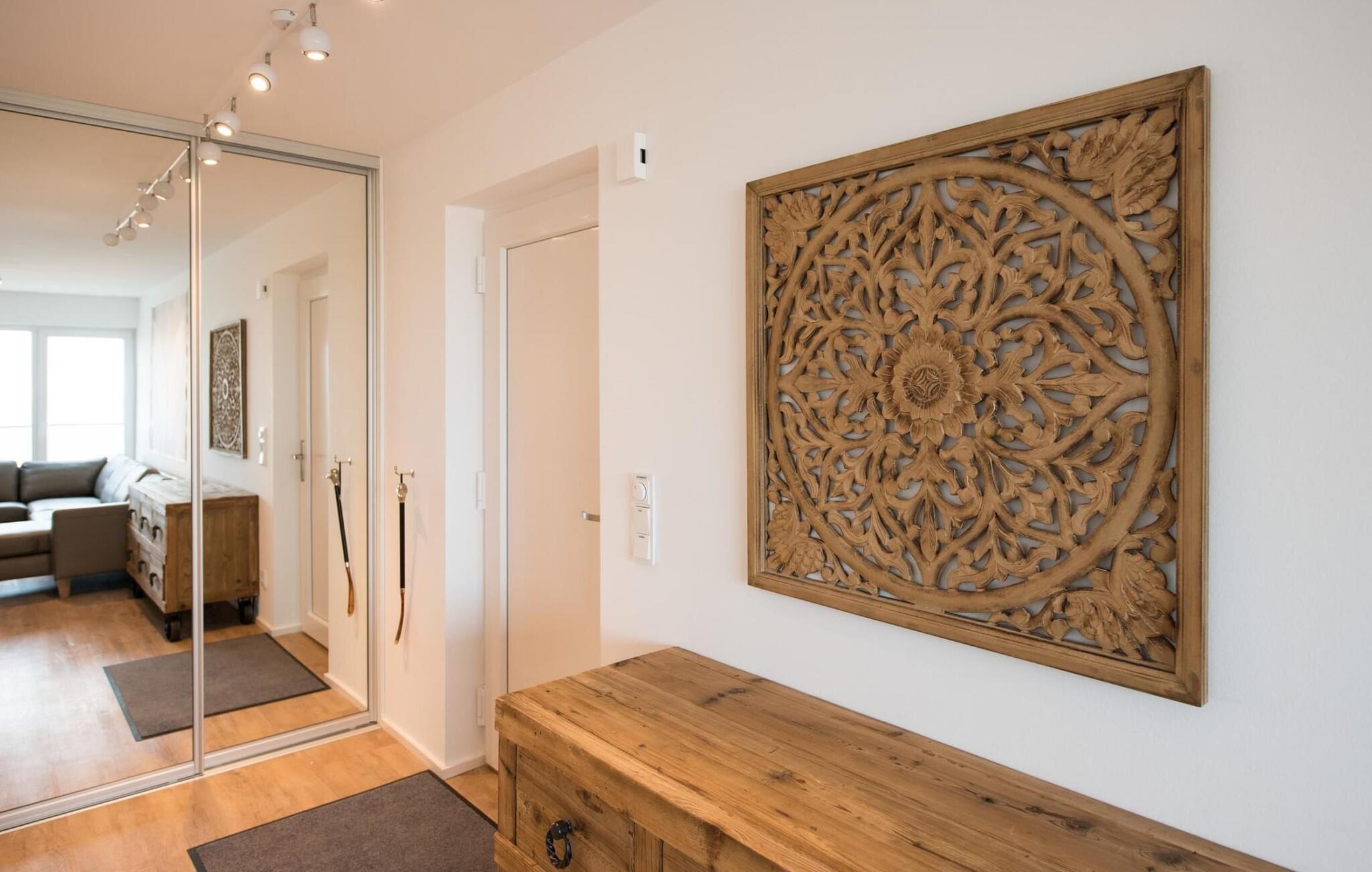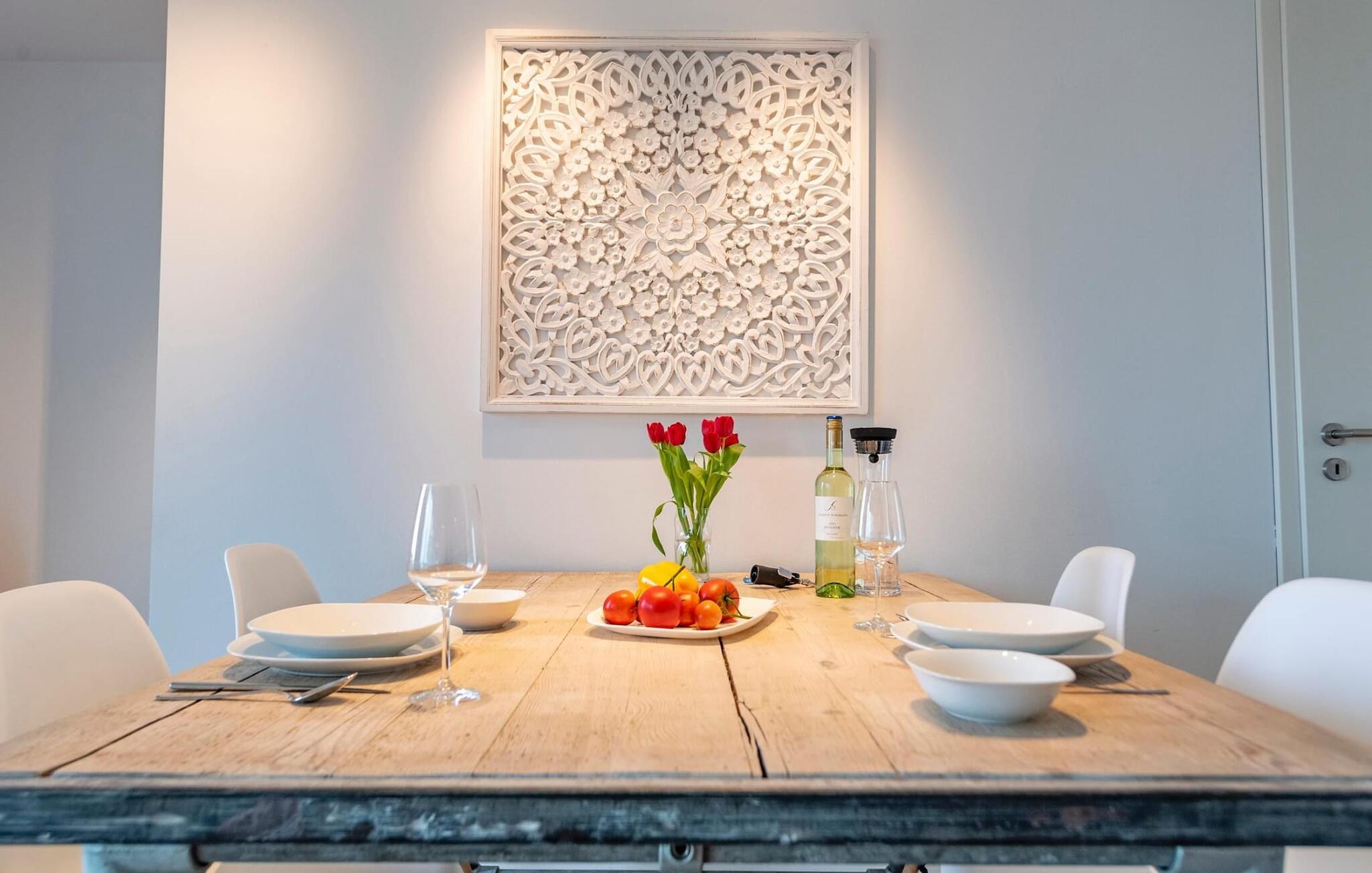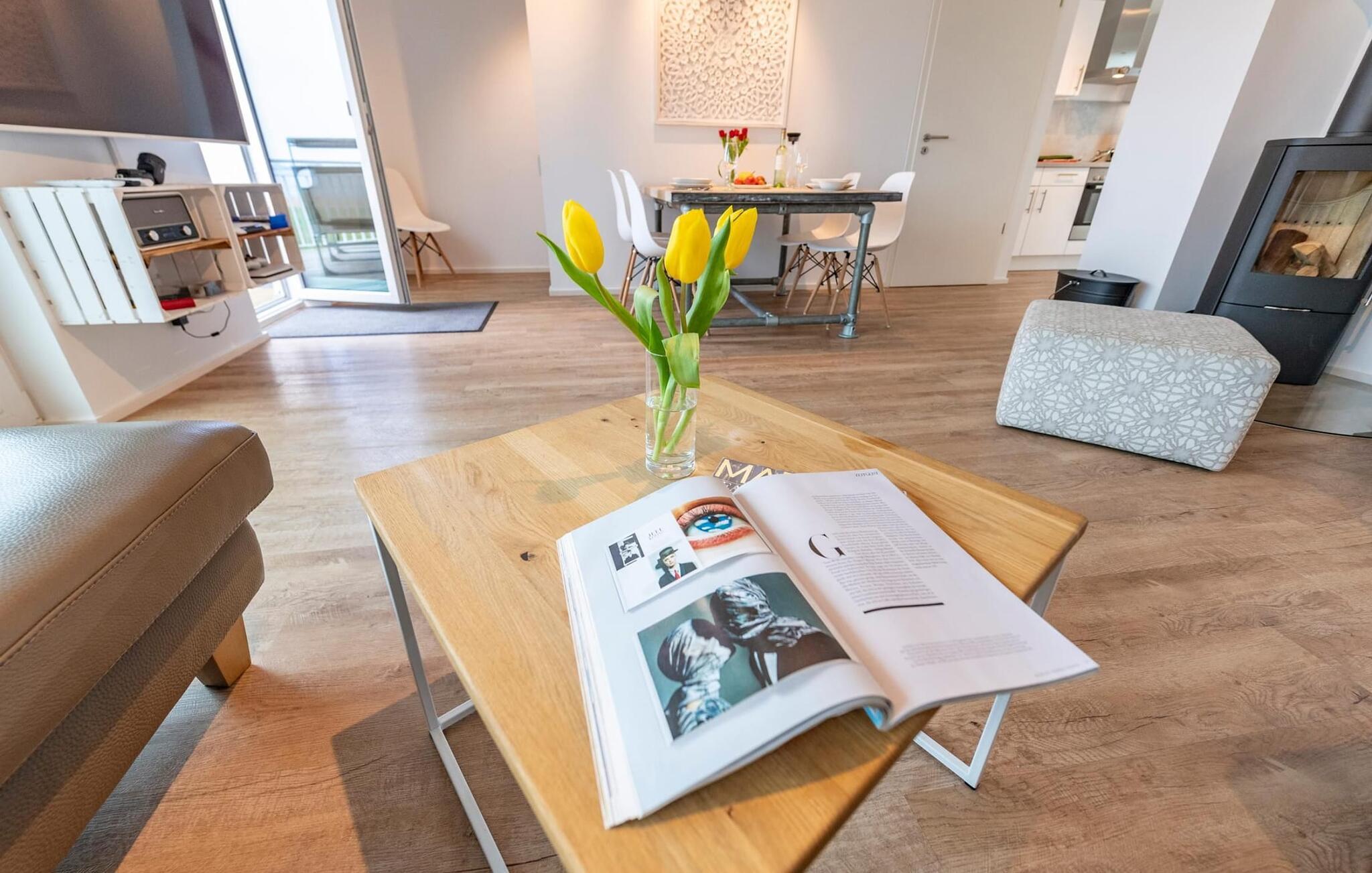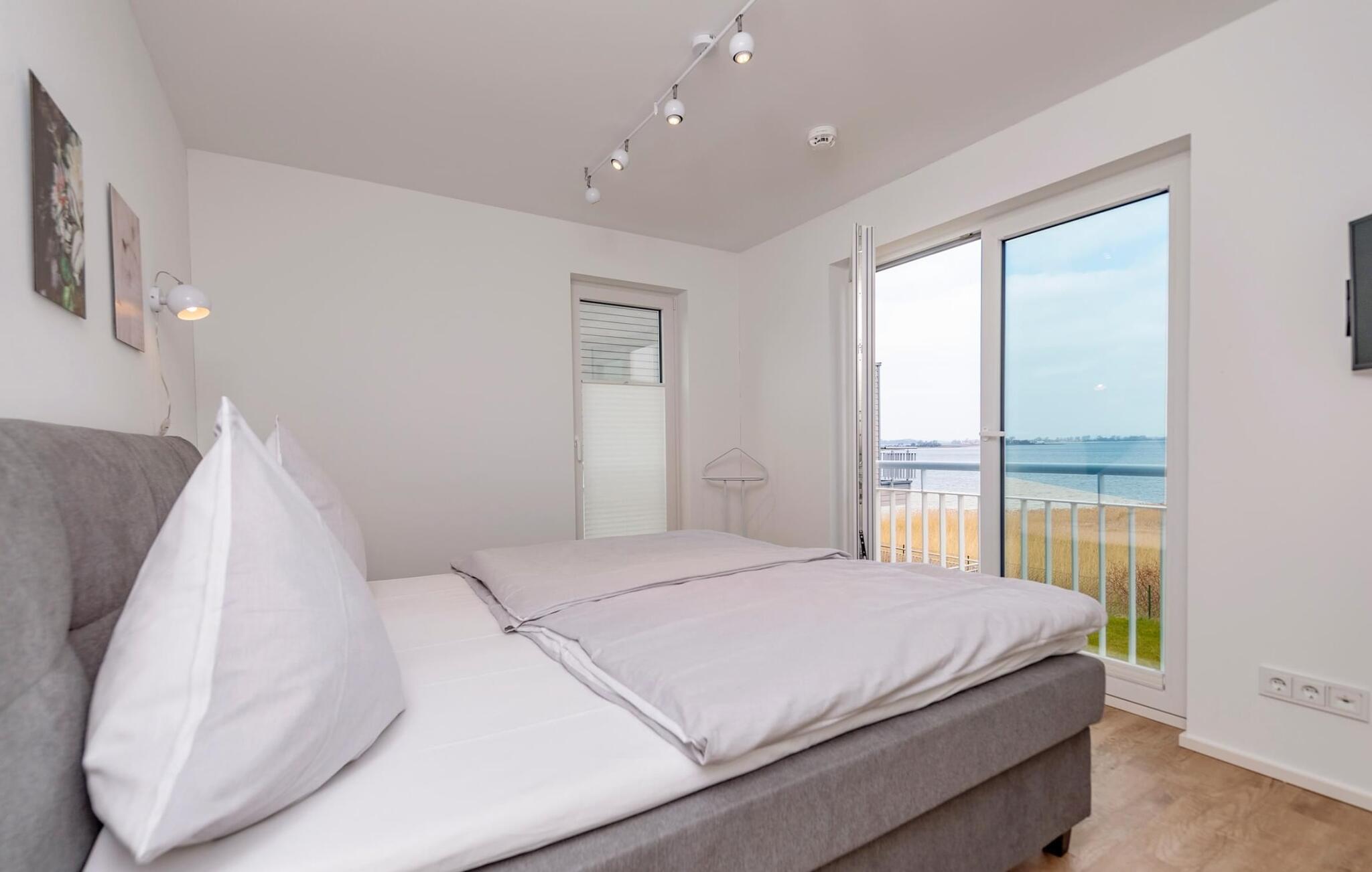 Das Highlight dieses exklusiven Ferienhauses stellt die Galerie mit angrenzender Dachterrasse im zweiten Obergeschoss dar, denn hier weilt man wahrlich über den Dingenbei traumhafter Aussicht über die Schlei und die Marina. Wellness-Liebhaber werden sich wohlfühlen, denn finnische Sauna mit Wasserblick und Whirlwanne laden nebenan zum Entspannen ein.