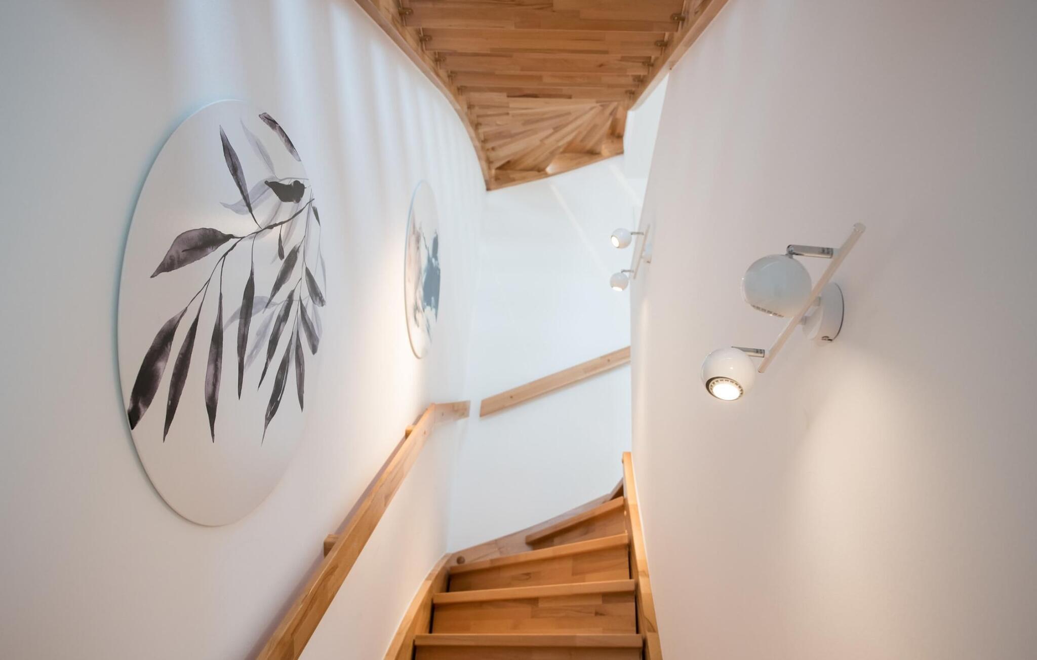 Im ersten Obergeschoss befindet sich der Ruhebereich: Hier bieten zwei Schlafzimmer ausreichend Platz zum Energietanken. Im Hauptschlafzimmer mit direktem Schleiblick ist Aufwachen und Einschlafen vor Traum-Kulisse angesagt. Zwei komfortable Schlafsessel befinden sich im Studio im zweiten Obergeschoss.
