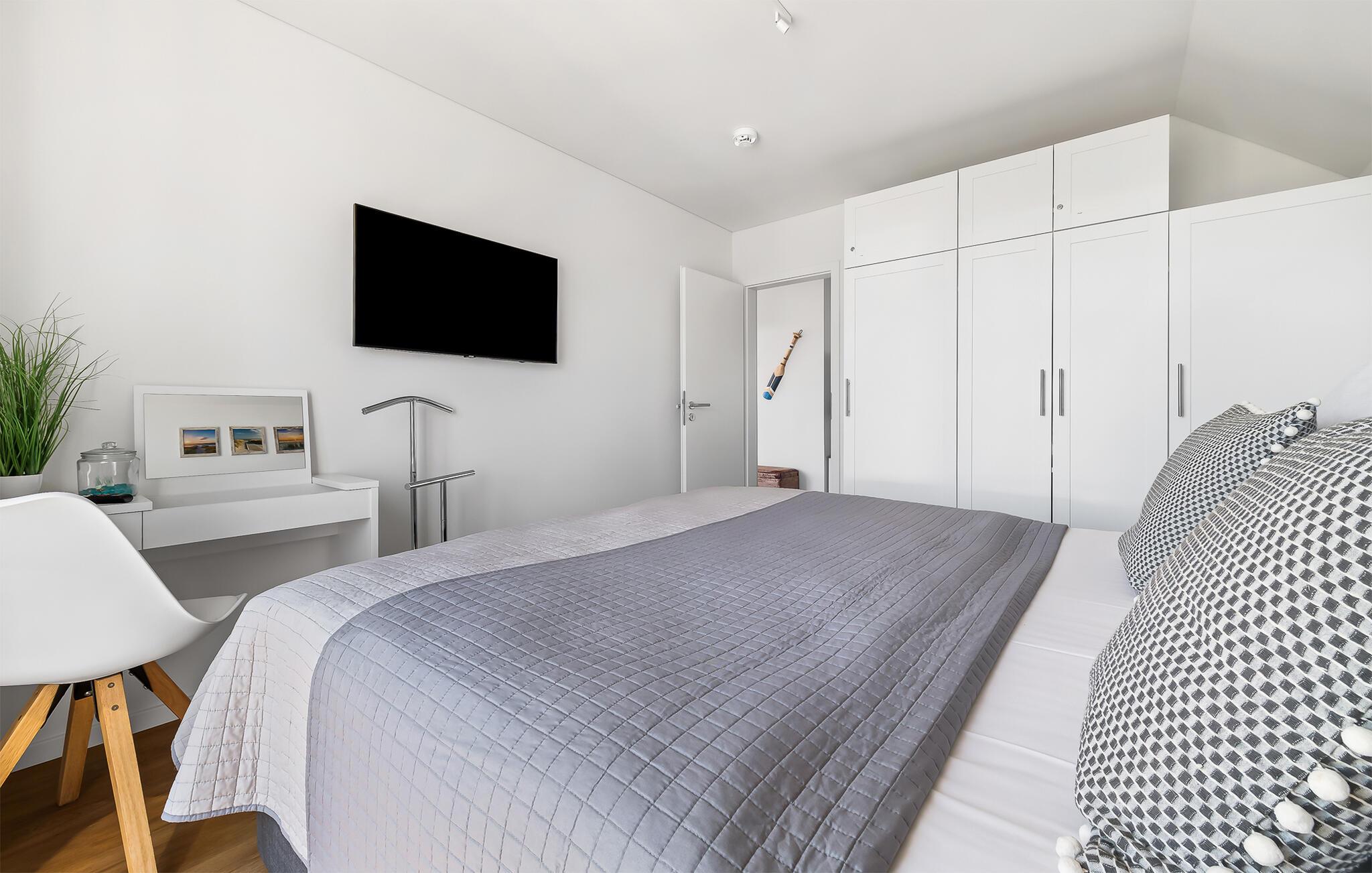 Für die nächtliche Erholung stehen zwei Schlafzimmer bereit. Ein Schlafzimmer ist mit einem Doppelbett ausgestattet, während das zweite Schlafzimmer mit zwei Einzelbetten aufwartet. Beide Schlafzimmer sind zusätzlich mit einem Fernseher für gemütliche Filmabende eingerichtet.