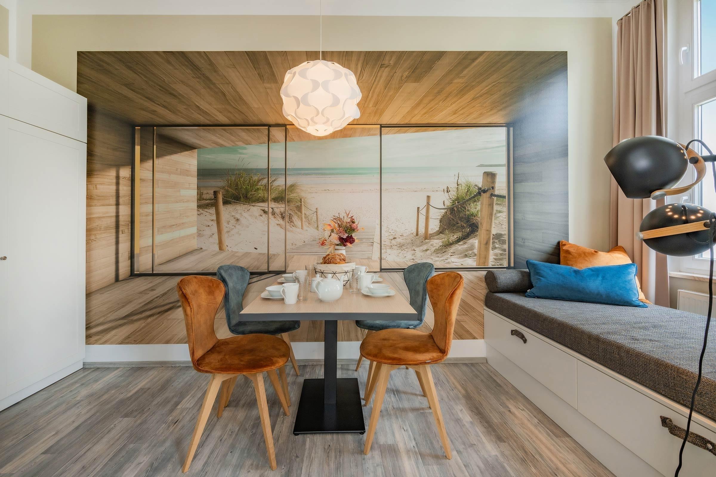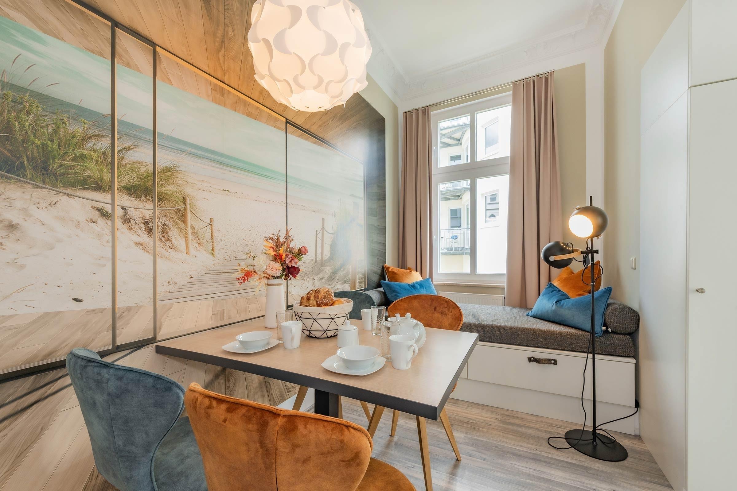 Das Apartment Dünengras in Seebad Ahlbeck bietet Komfort und Eleganz nur 100 Meter vom Strand entfernt.