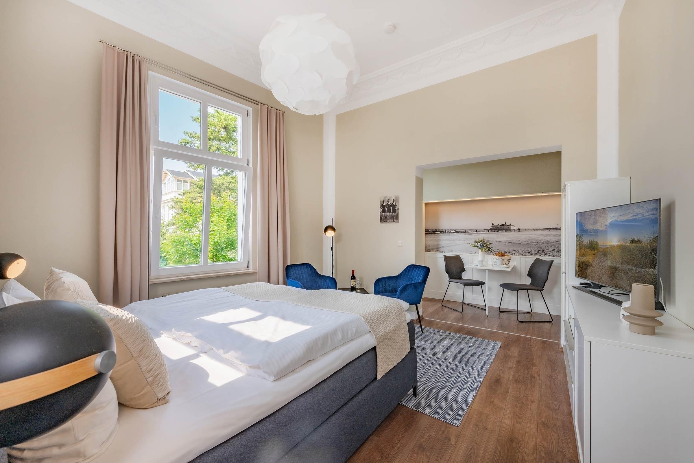 In der anmutigen Villa Carmen in Seebad Ahlbeck erwartet das Apartment Seebrücke Gäste mit einer Mischung aus modernem Komfort und entspannender Atmosphäre. Auf einer Fläche von 36 m² bietet dieses lichtdurchflutete Apartment alles, was Sie für einen unvergesslichen Aufenthalt benötigen. Genießen Sie den ruhigen Schlaf im bequemen Doppelbett. Obwohl Haustiere in dieser speziellen Einheit nicht gestattet sind, verspricht die rauchfreie Umgebung eine frische und saubere Atmosphäre während Ihres gesamten Aufenthalts.