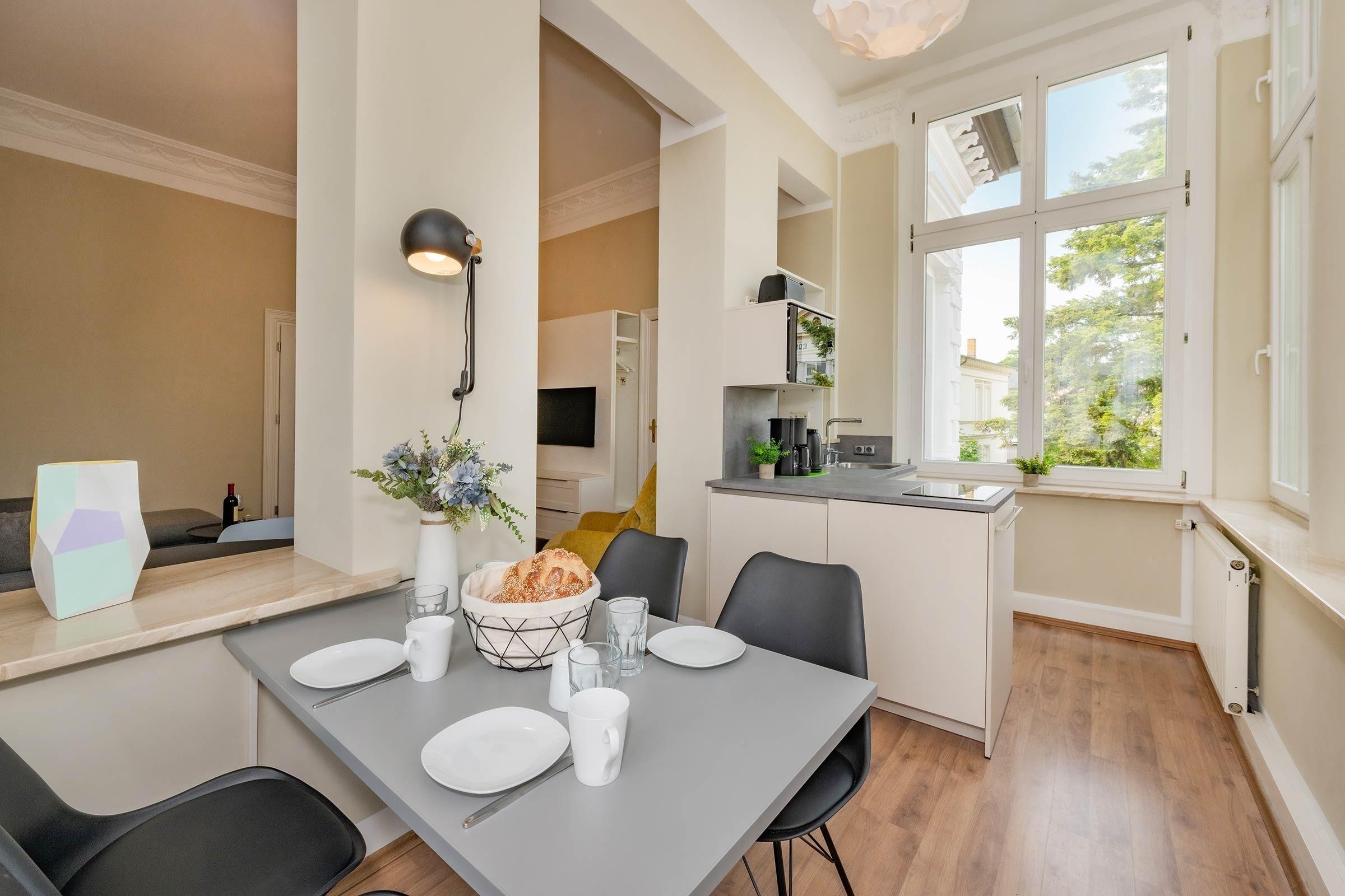 Das elegante Apartment "Waterblick" in Seebad Ahlbeck bietet auf 50 m² Komfort und Meerblick nur 100 m vom Strand entfernt.