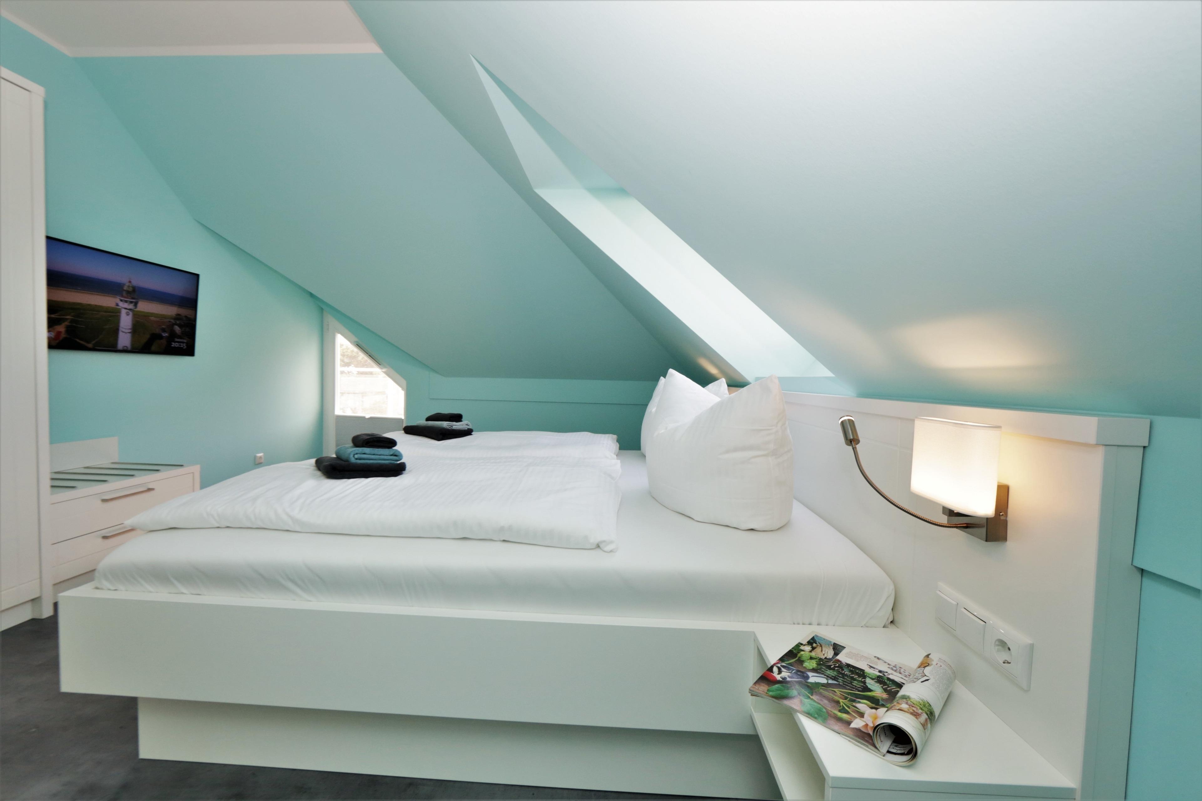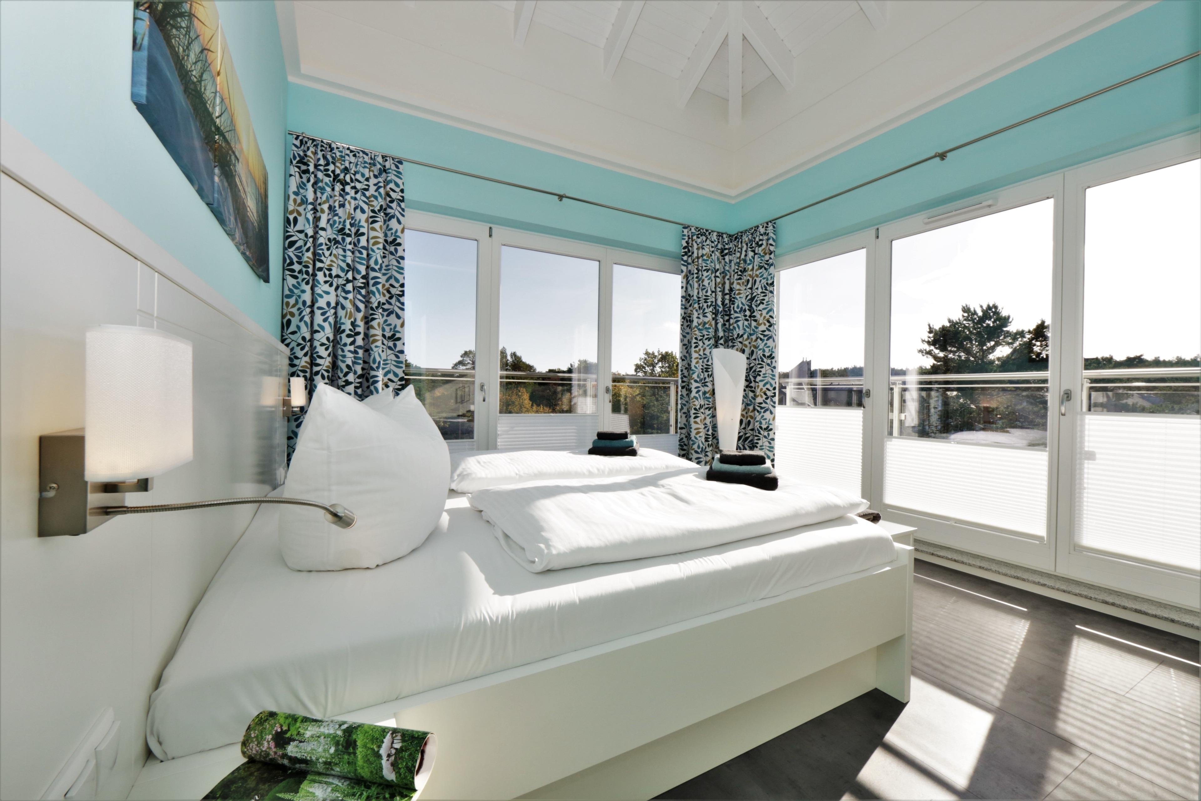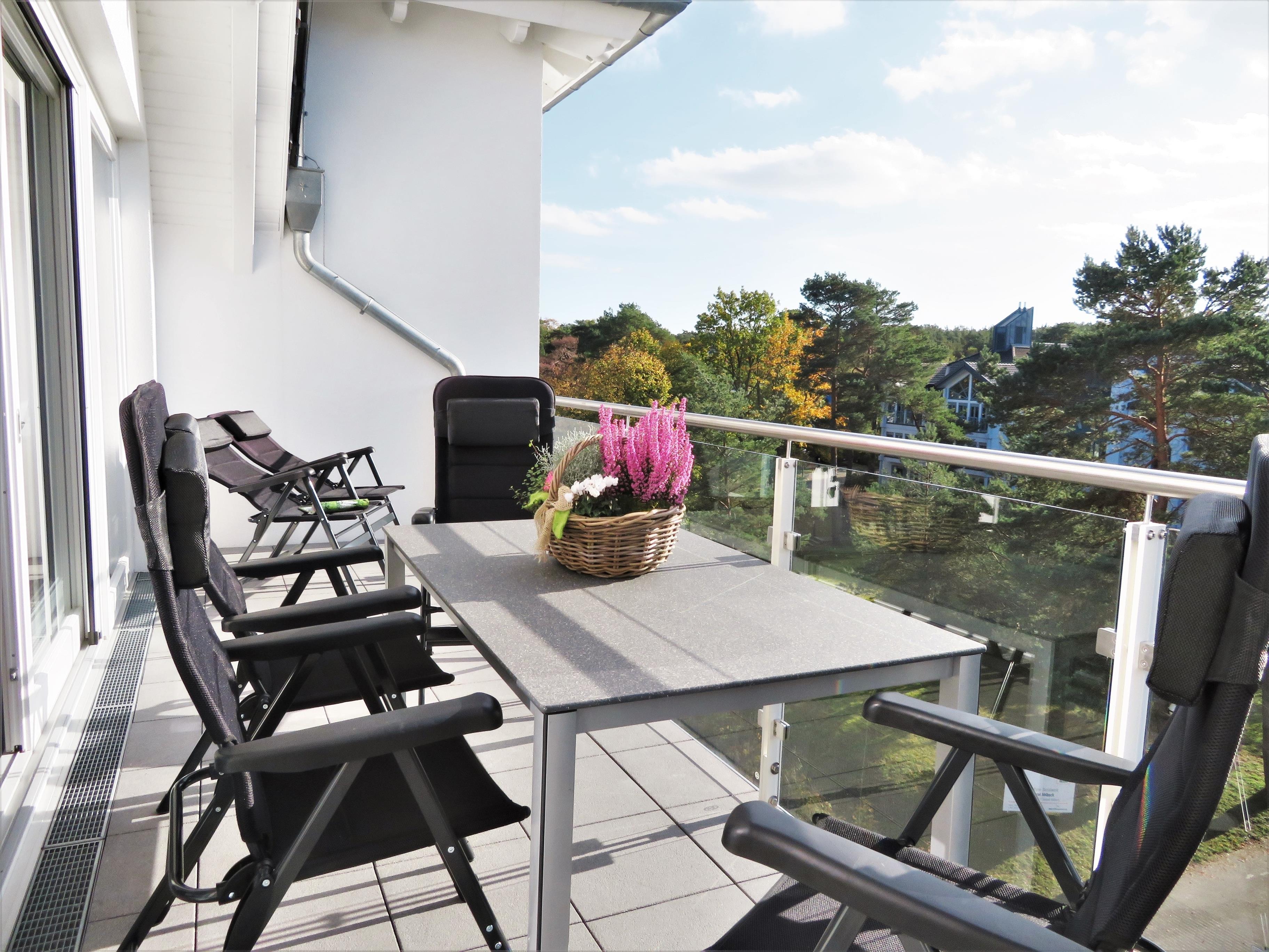 Dieses mit 100 qm sehr großzügige 3-Zimmer Appartement befindet sich im Dachgeschoss der 2018 neu erbauten Strandresidenz und bietet 4-5 Personen reichlich Komfort. Genießen Sie Ihren Urlaub direkt am Meer in dieser hochwertig und sehr geschmackvoll eingerichteten Wohnung. Im Wohnbereich mit großer Fensterfront erwartet Sie eine bequeme Polstergarnitur bestehend aus Sofa und Sessel, ein Couchtisch und Flat TV sowie ein Esstisch für gemeinsame Mahlzeiten. Ein Gaskamin sorgt für Gemütlichkeit und zusätzliche Wärme bei Bedarf. Die moderne separate Küche ist mit Cerankochfeld, Backofen mit integrierter Mikrowelle, Geschirrspüler, Kühlschrank etc. ausgestattet. Beide Schlafzimmer verfügen jeweils über ein komfortables Doppelbett mit getrennten Matratzen (90 x 200), reichlich Schrankraum sowie einen eigenen TV. Von einem der beiden Schlafzimmer können Sie einen Blick auf die Ostsee erhaschen. Den großen mit einer Essgruppe möblierten Balkon in Süd-West-Ausrichtung betreten Sie vom Wohnraum. Auf der Dachterrasse (ebenfalls zum Süd-Westen) können Sie den Tag mit einem Glas Wein ausklingen lassen. Beide Badezimmer sind mit einer bodengleichen Dusche mit Echtglasabtrennung und Waschtisch/WC ausgestattet.