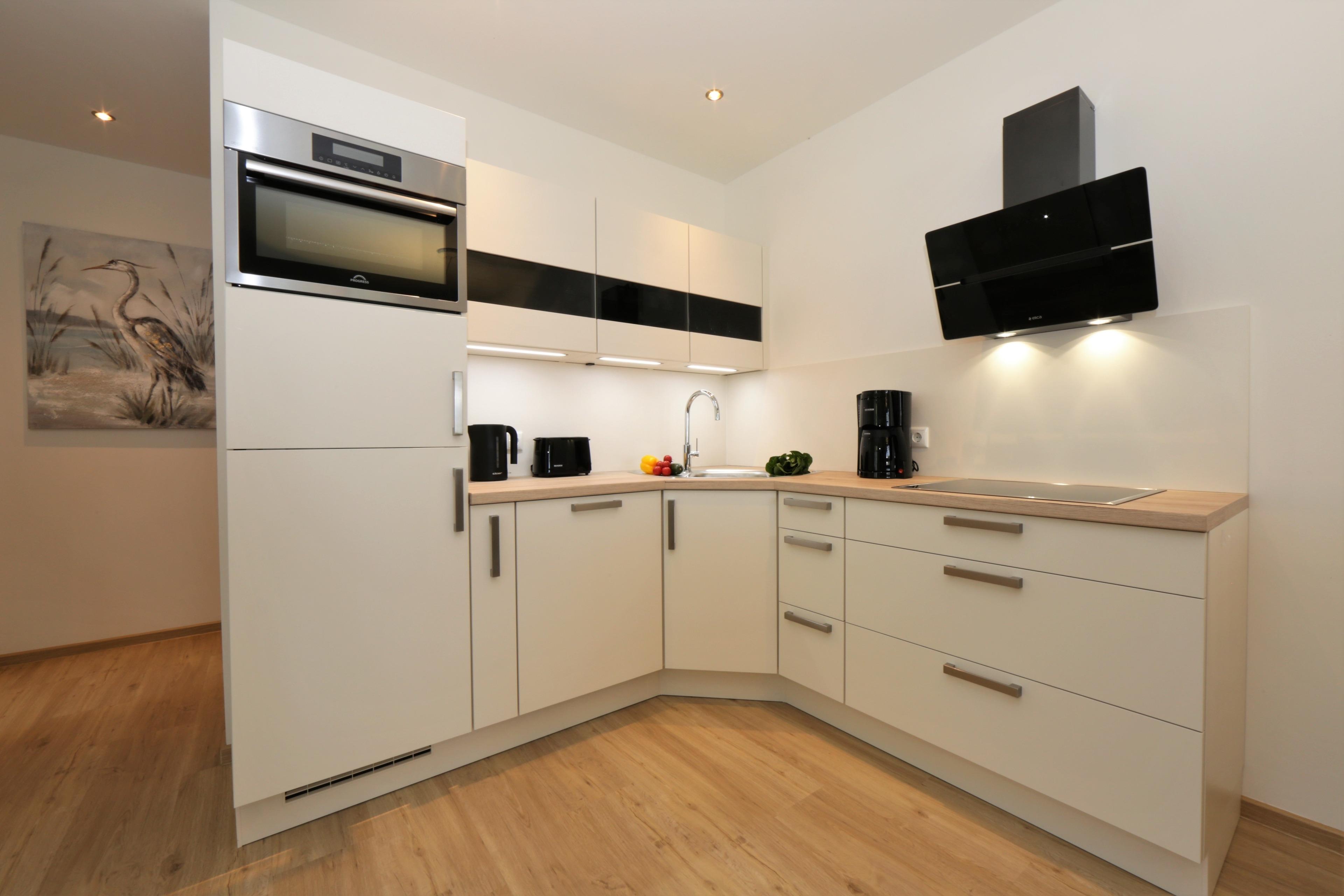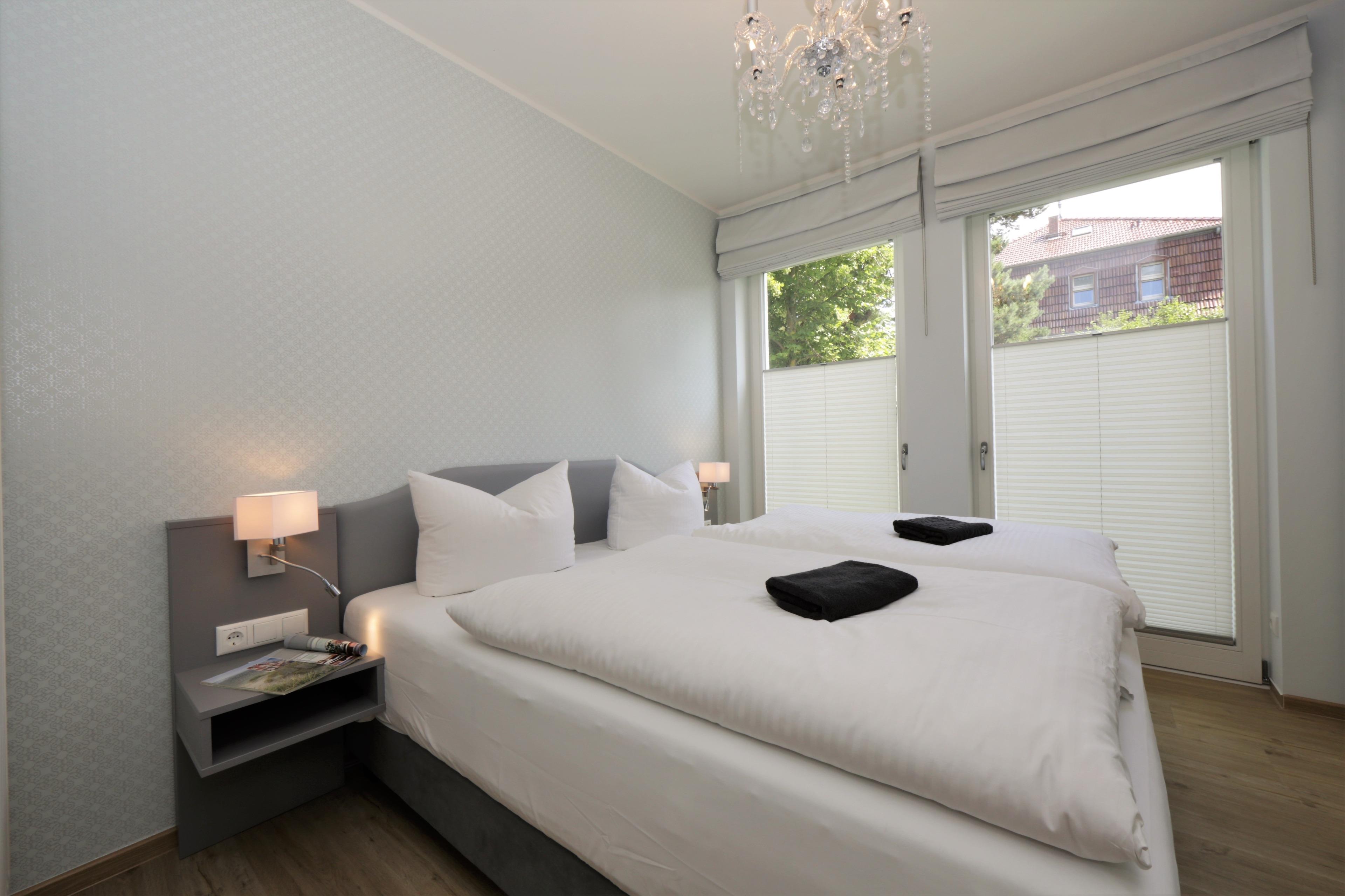 Diese moderne und mit viel Liebe zum Detail eingerichtete 3-Zimmer Wohnung ist 62 qm groß und liegt im Erdgeschoss. Sie bietet für bis zu 4 Erwachsenen und 2 Kindern Platz für einen erholsamen Ostseeaufenthalt direkt am Meer. Der charmant eingerichtete Wohnraum verfügt über eine gemütliche Sitzgruppe mit Sofa (Liegefläche 160 x 200) und Flat TV. Der Essplatz und die Küchenzeile incl. Geschirrspüler, Ceranfeld, Backofen, Mikrowelle, Kühlschrank etc. sind offen im hinteren Bereich des Wohnraums integriert. Auf der überdachten Terrasse zum Osten genießen Sie ihr Frühstück schon im Freien und haben die Promenade im Blick und auch ein wenig das Meer. Die Schlafzimmer sind jeweils mit einem komfortablen Boxspringbett mit getrennten Matratzen (90 x 200), ausreichend Schrankraum und einem zusätzlichen TV eingerichtet. Das großzügige, moderne Bad ist mit einer ebenerdigen Dusche und Waschtisch/WC ausgestattet.