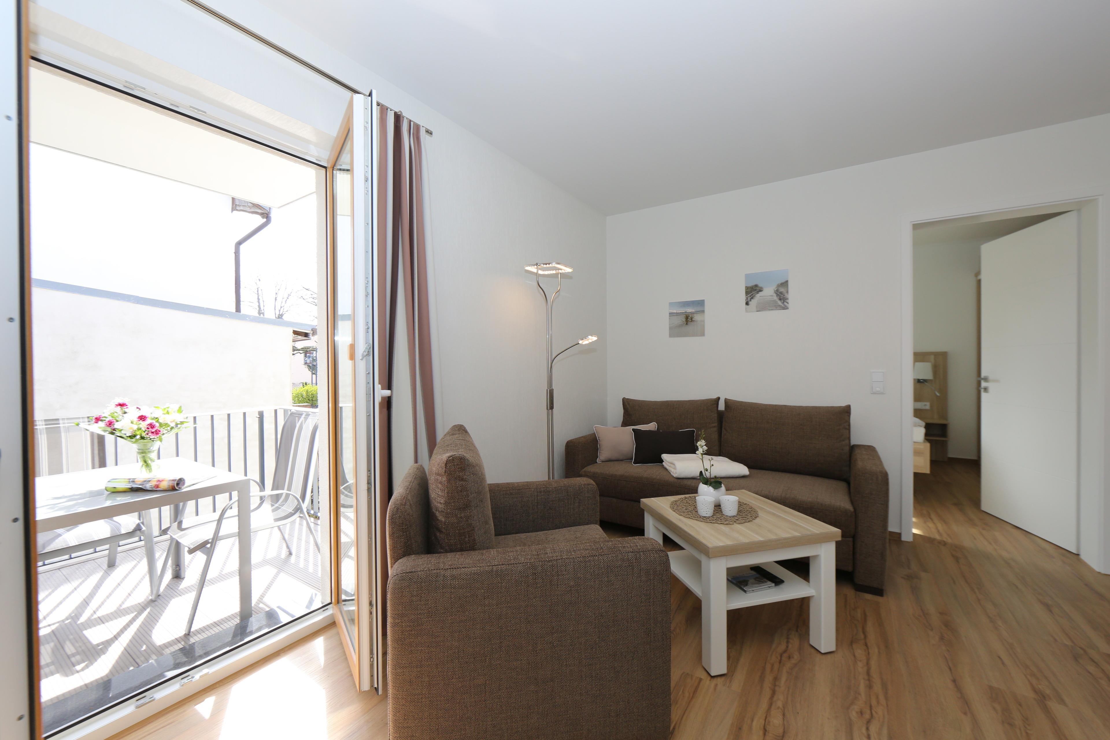 Moderne Ferienwohnung mit Balkon und Strandnähe im ruhigen Seebad Ahlbeck, ideal für 2-3 Gäste.