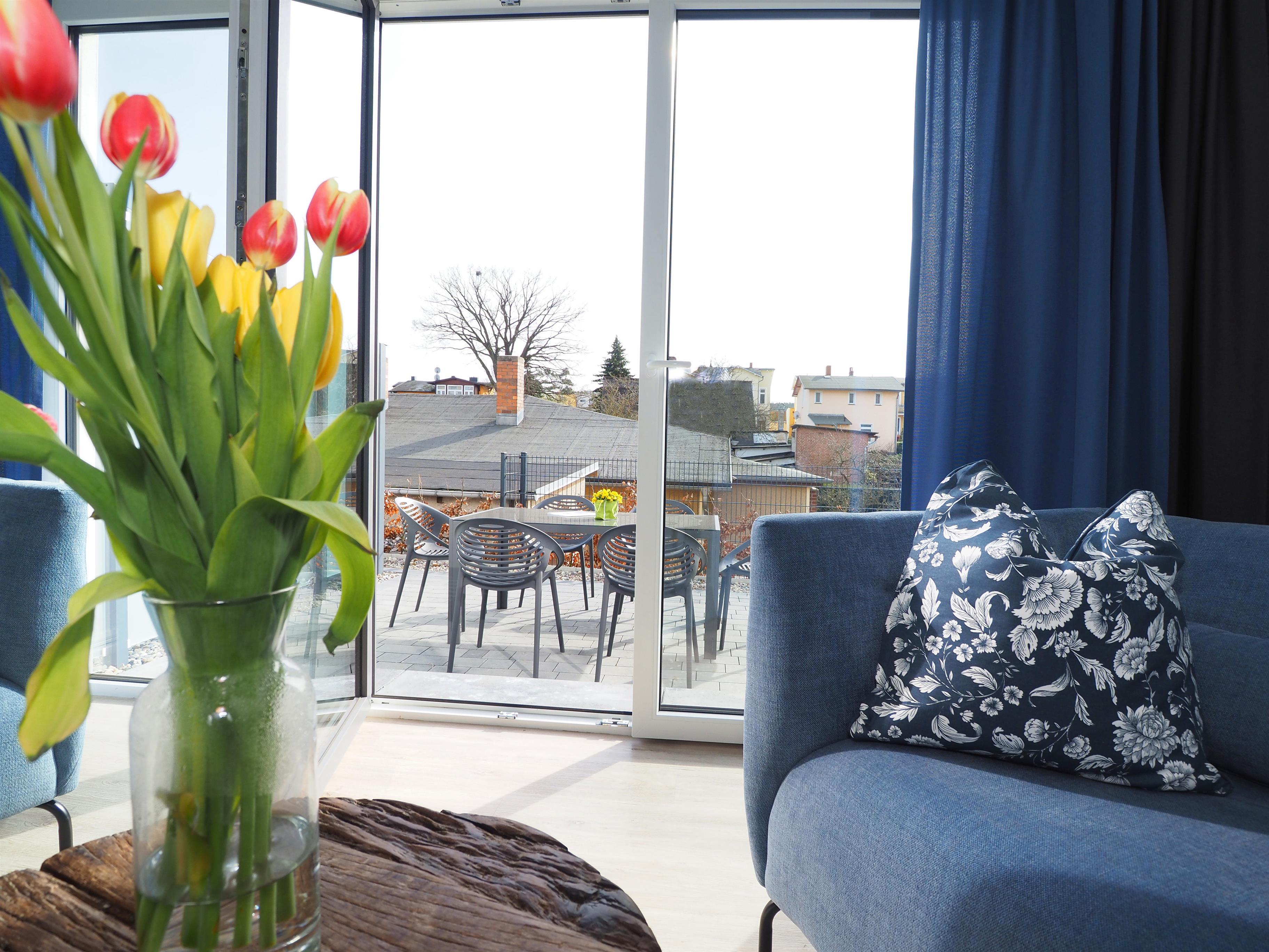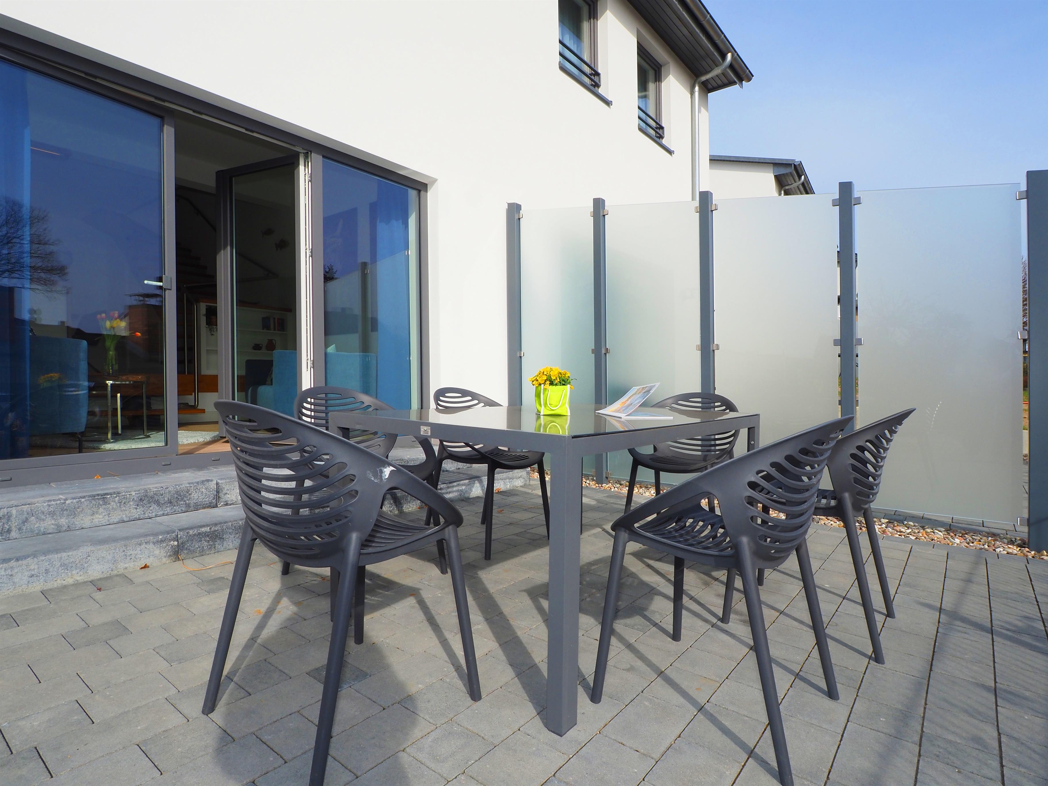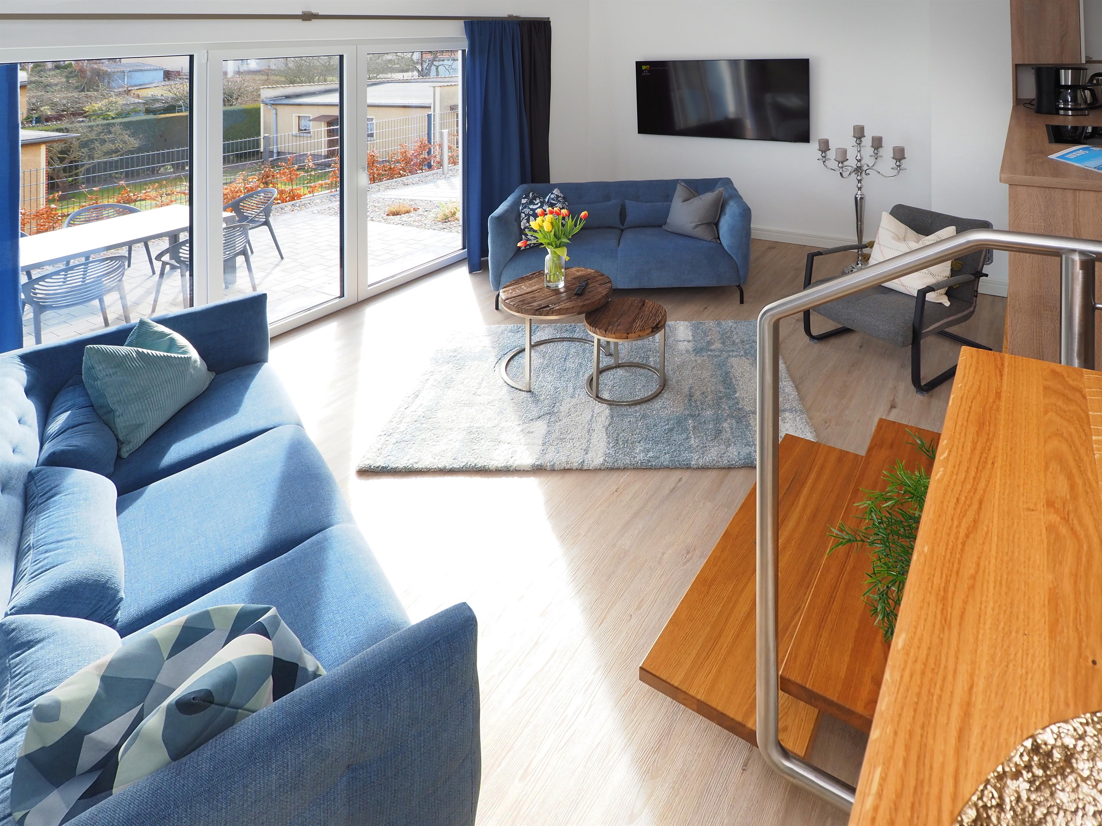 Diese moderne hochwertige 4-Zimmer Haushälfte erstreckt sich mit ihren 98 qm und ihren 4 Zimmern über zwei Ebenen. Alle Räume sind geschmackvoll und mit viel Liebe zum Detail gestaltet. Maximal 6 Personen können hier mit viel Komfort erholsame Ferien verleben. Im Erdgeschoss lädt die Wohnküche zum Kochen und zu gemeinsamen Mahlzeiten ein. Die moderne Küche ist mit Geschirrspüler, Cerankochfeld, Backofen, Kühlschrank etc. ausgestattet. Am angrenzenden bequemen Essplatz werden Sie gerne länger verweilen. Über ein paar Stufen abwärts erreichen Sie den offenen Wohnraum mit großem Sofa, Couchtisch und Flat TV. Von hier aus gelangen Sie auf die möblierte Terrasse, die südlich ausgerichtet ist und viel Sonne verspricht.