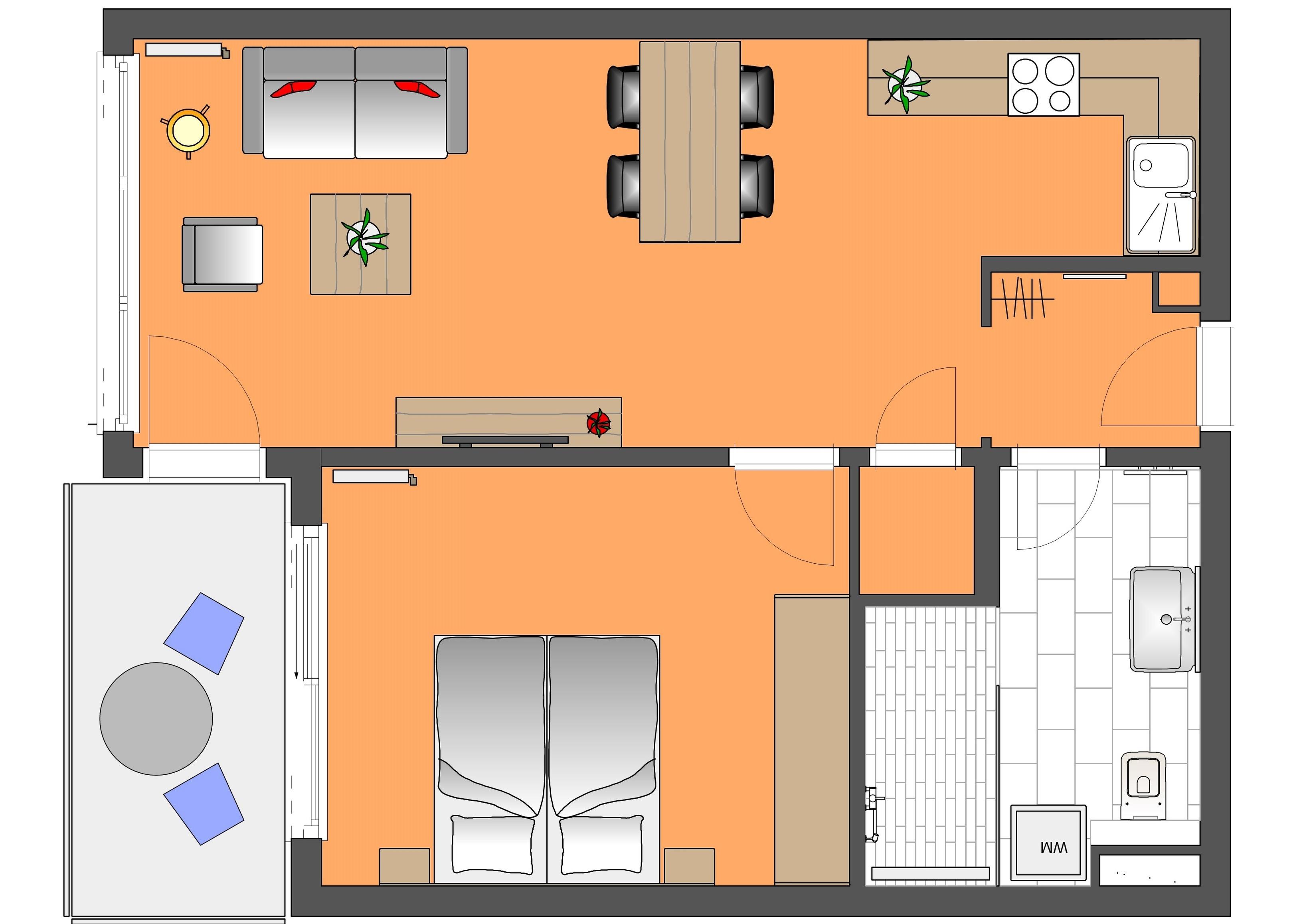 - Wohn-/Schlafzimmer, 2 Personen
