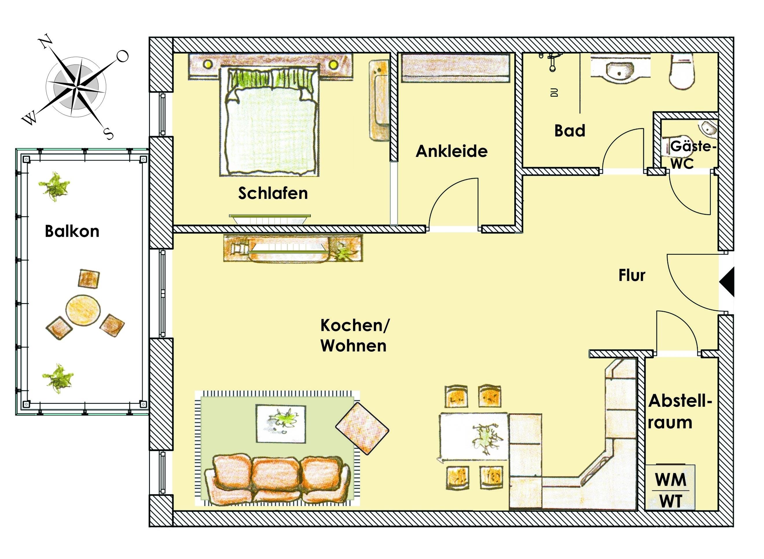 Dem Appartement ist ein Pkw-Stellplatz zugeordnet, der sich auf dem Grundstück befindet. Fahrräder können im ebenfalls auf dem Grundstück vorhandenen Fahrradschuppen abgestellt werden.