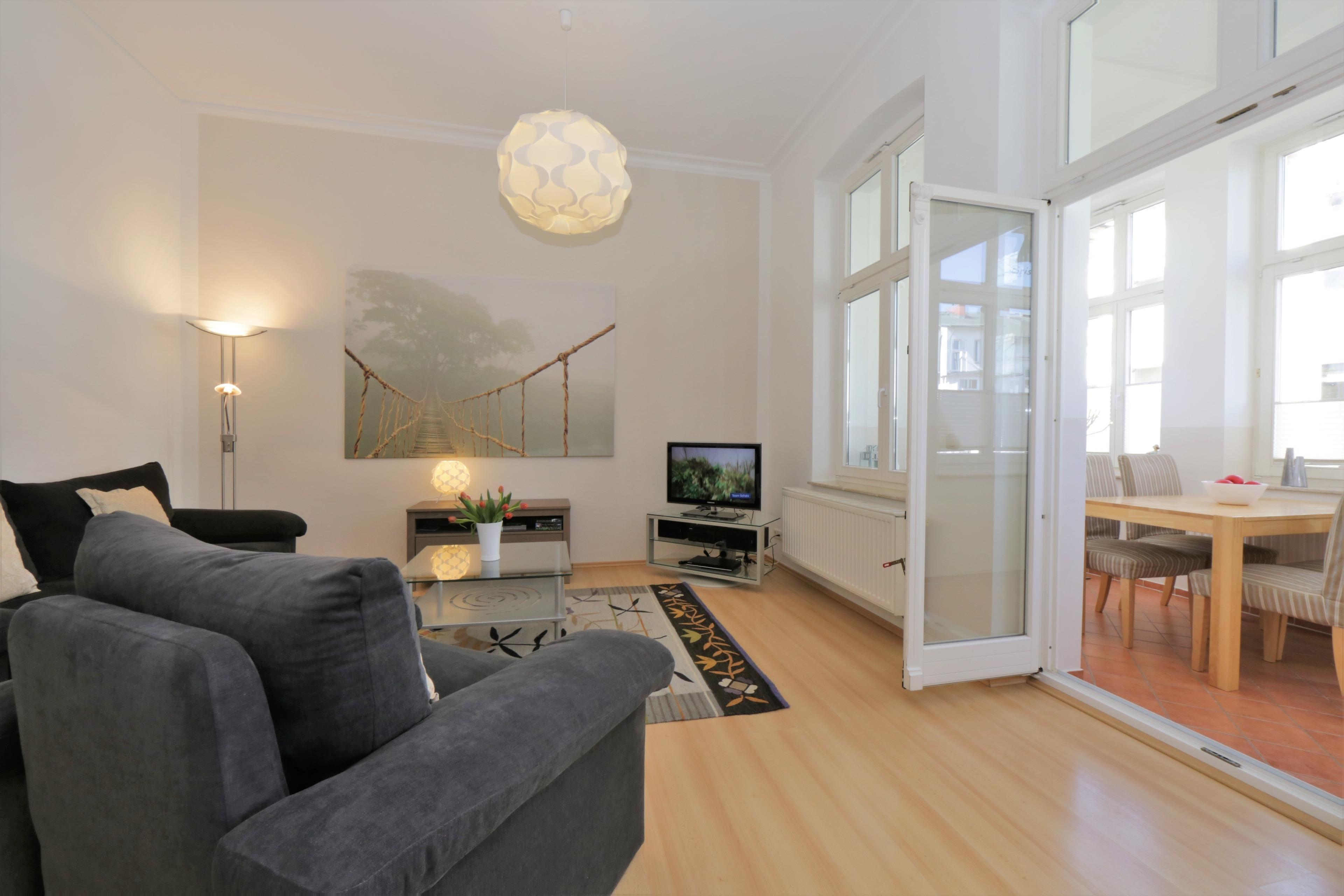 Gemütliche Ferienwohnung im Kaiserbäderstil, nur 50 m vom weißen Sandstrand und der Strandpromenade in Ahlbeck entfernt.
