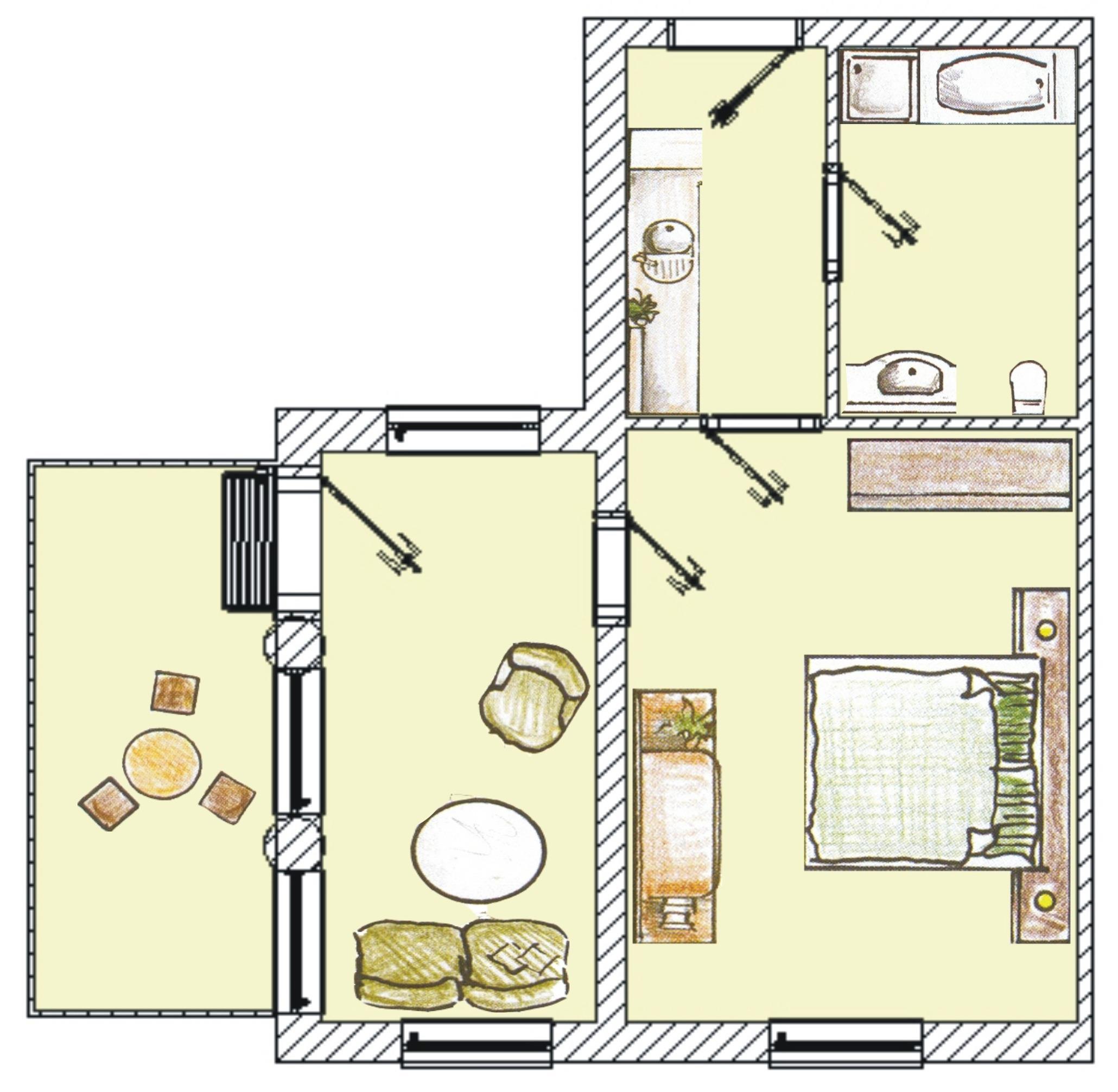 - Wohn-/Schlafzimmer, 2 Personen