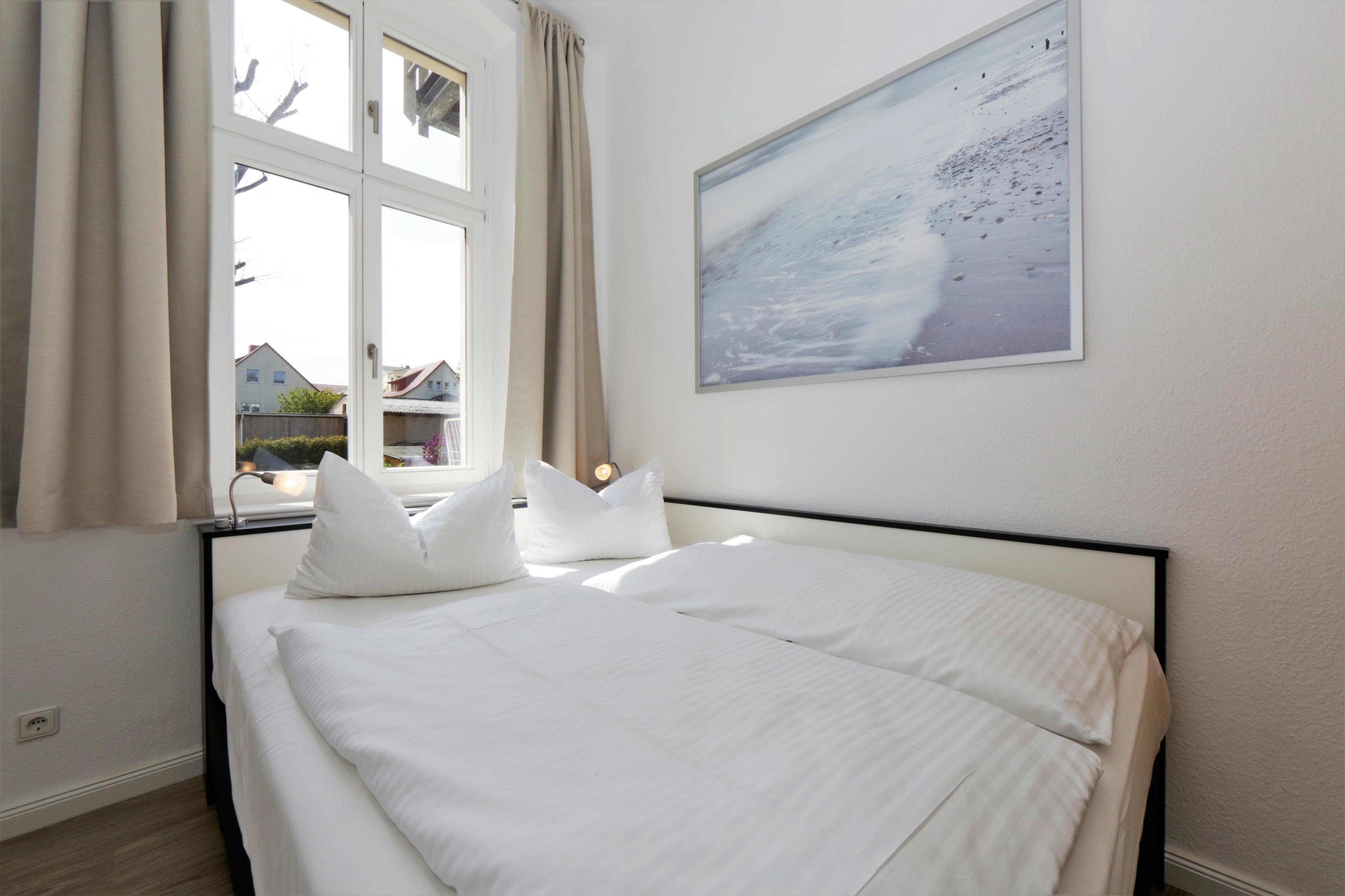 Dieses 44 qm große 2-Zimmer-Appartement befindet sich im Erdgeschoss zur Hofseite der Villa Luna und bietet 2-3 Personen Platz für einen erholsamen Urlaub direkt am Meer. Der modern eingerichtete Wohnraum bietet den Gästen ein Sofa mit Schlaffunktion und Flat-TV. Der Essplatz sowie die Vollküche incl. Kühlschrank, Geschirrspüler, Ceranfeld, Backofen etc. sind ebenfalls im Wohnraum integriert. Von hier ist auch der sonnige Balkon begehbar, der Sie zu den Mahlzeiten ins Freie lockt. Das Schlafzimmer ist mit einem Boxspringbett mit durchgehender Matratze (160 x 200) und einem Kleiderschrank eingerichtet. Das Tageslichtbad bietet Ihnen Dusche und Badewanne sowie Waschtisch/WC. Ein Pkw-Stellplatz befindet sich auf dem Grundstück und ist der Wohnung zugeordnet.
