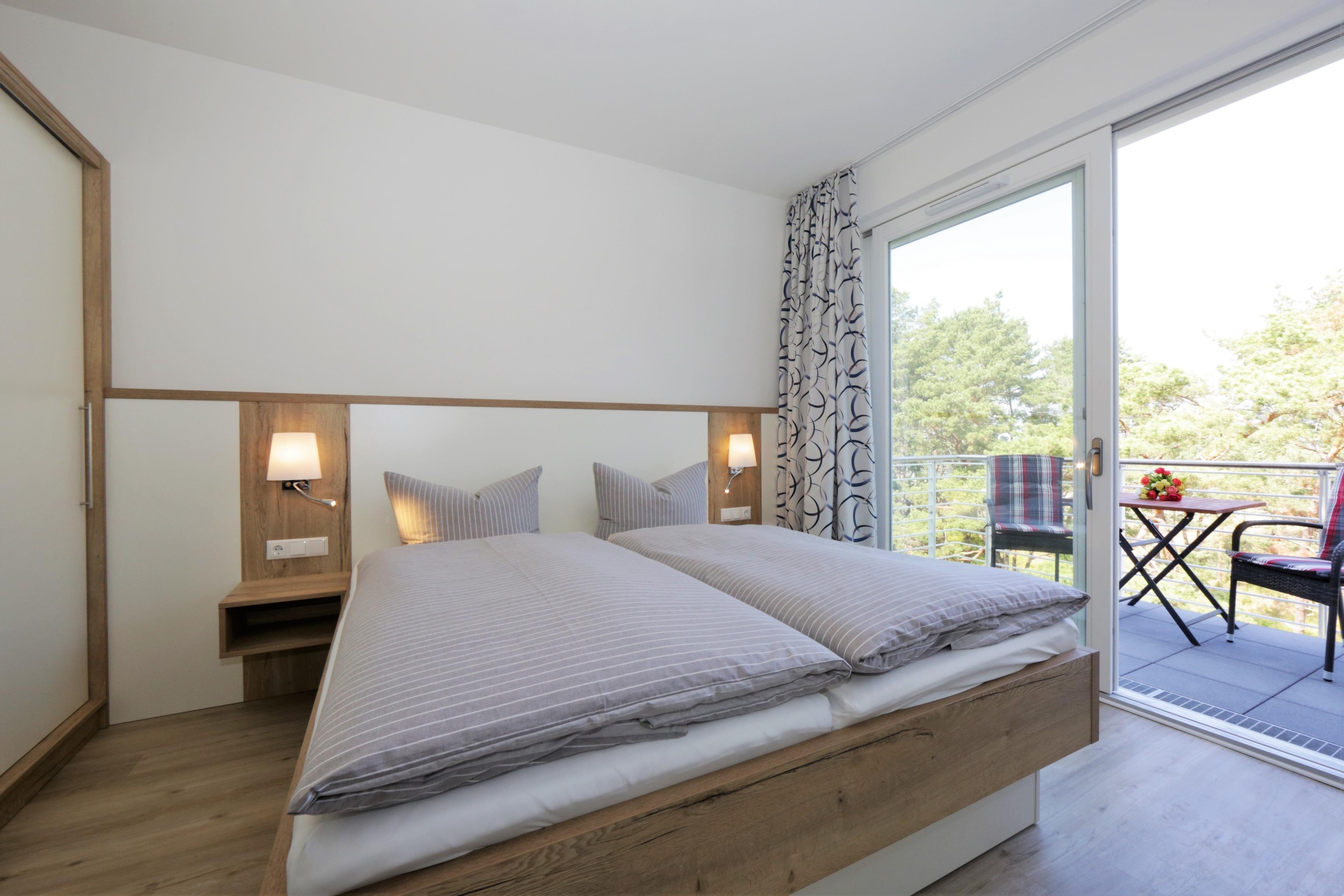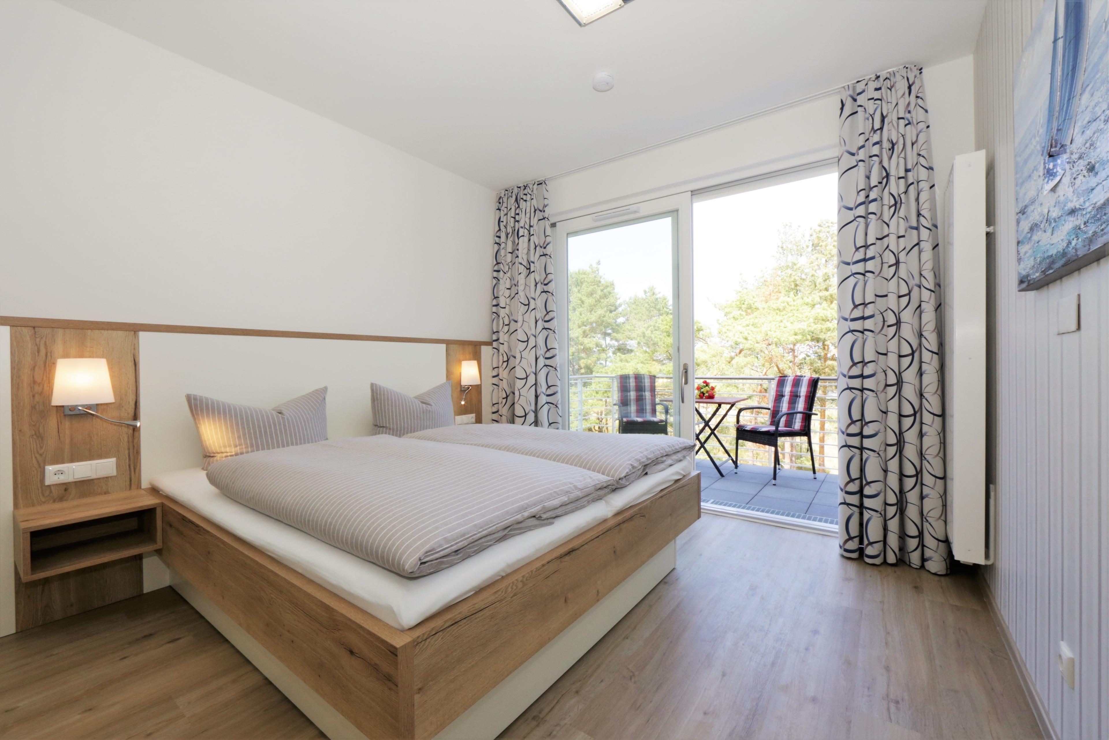 Die moderne, liebevoll eingerichtete 2-Zimmer Ferienwohnung mit 51 m² Wohnfläche befindet sich im 3. Obergeschoss der Strandresidenz. Der Balkon zur Promenade mit traumhaftem Seeblick lockt die Gäste schon zum Frühstück ins Freie. Die Wohnung ist individuell und komfortabel ausgestattet und bietet 2 Personen Platz für einen erholsamen Urlaub am Meer. Der offene Wohnraum bietet Ihnen eine gemütliche Sitzecke mit einem bequemen Sofa, einem Sessel und Flat TV. Die Küchenzeile incl. Backofen, Ceranfeld, Kühlschrank, Geschirrspüler, Mikrowelle etc. sowie der Essplatz sind offen im Wohnraum integriert. Das geräumige Schlafzimmer ist mit einem Doppelbett mit getrennten Matratzen (90 x 200), einem großen Kleiderschrank eingerichtet. Aus beiden Zimmern genießen Sie den Seeblick aus erster Hand. Der Balkon lässt sich sowohl vom Wohn- als auch vom Schlafzimmer betreten. Das großzügige, moderne Bad ist mit einer ebenerdigen Dusche und Waschtisch/WC ausgestattet.