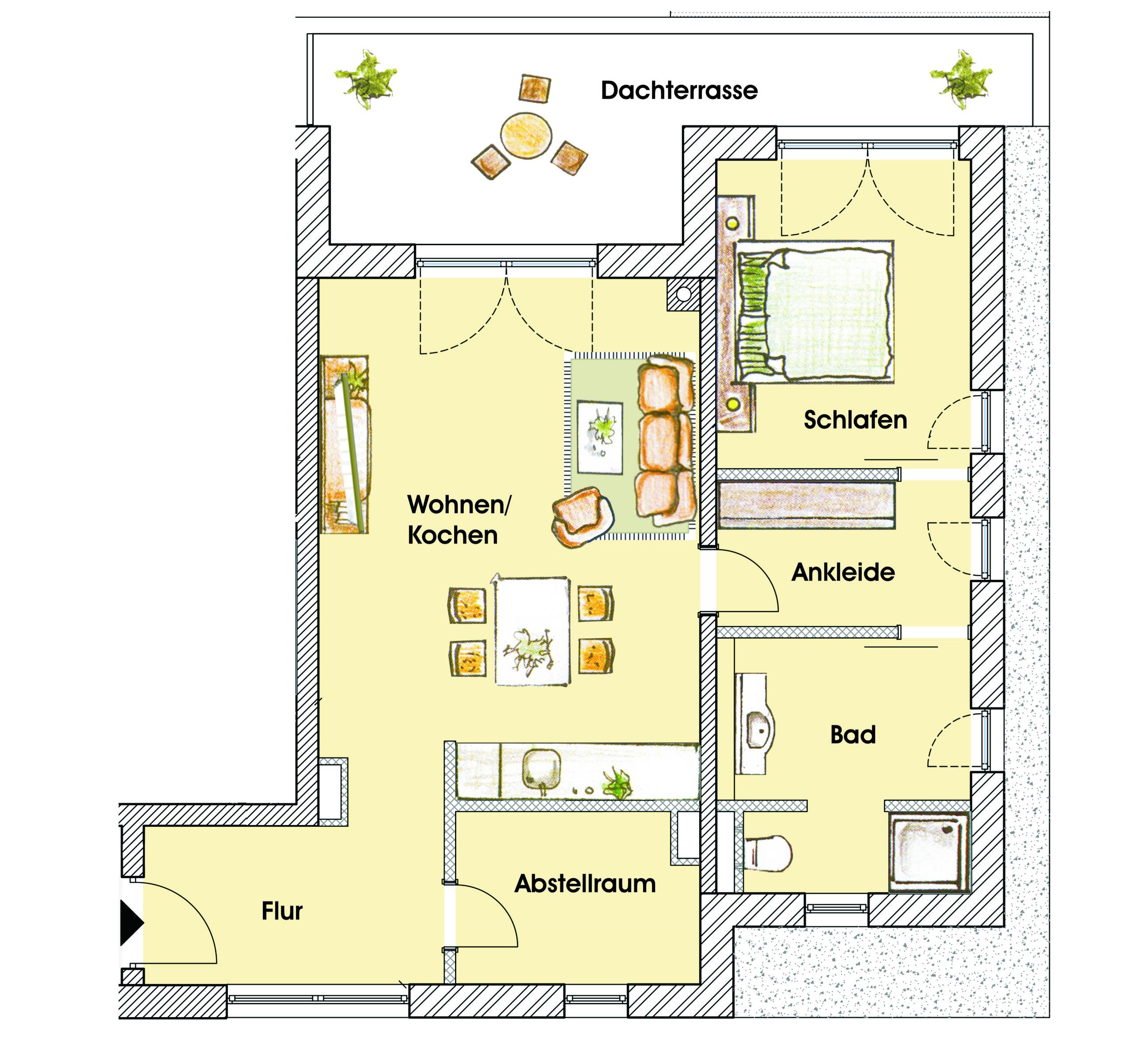 Dieses hochwertige, moderne 2-Zimmer Appartement ist 63 qm groß und befindet sich im Staffelgeschoss der 2016 neu erbauten Ahlbeck Suiten. Die Wohnung ist geeignet für 2 Personen. Zum hell und komfortabel eingerichteten Wohnbereich gehört die zum Relaxen einladende Polsterecke, ein moderner Couchtisch sowie ein Essplatz. Flat-TV und Radio sind selbstverständlich. Die im Wohnraum integrierte und großzügige Küchenzeile ist mit Cerankochfeld, Backofen, Geschirrspülmaschine und Kühlschrank inkl. Gefrierfach ausgestattet. Das helle Schlafzimmer verfügt über ein komfortables Doppelbett und einen zusätzlichen TV. Ausreichend Stauraum steht im großen Schiebetürenschrank direkt vor dem Schlafzimmer zur Verfügung. Das geräumige Bad ist mit Dusche, WC und Waschtischanlage ausgestattet. Eine großzügige überdachte Dachterrasse Richtung Westen mit tollem Ausblick erreichen Sie über den Wohn- und Schlafbereich. Hier können Sie bei abendlicher Sonne den Tag entspannt ausklingen lassen. Für ein behagliches Wohlfühlen in der kälteren Jahreszeit sorgen ein moderner Kaminofen und die Fußbodenheizung.