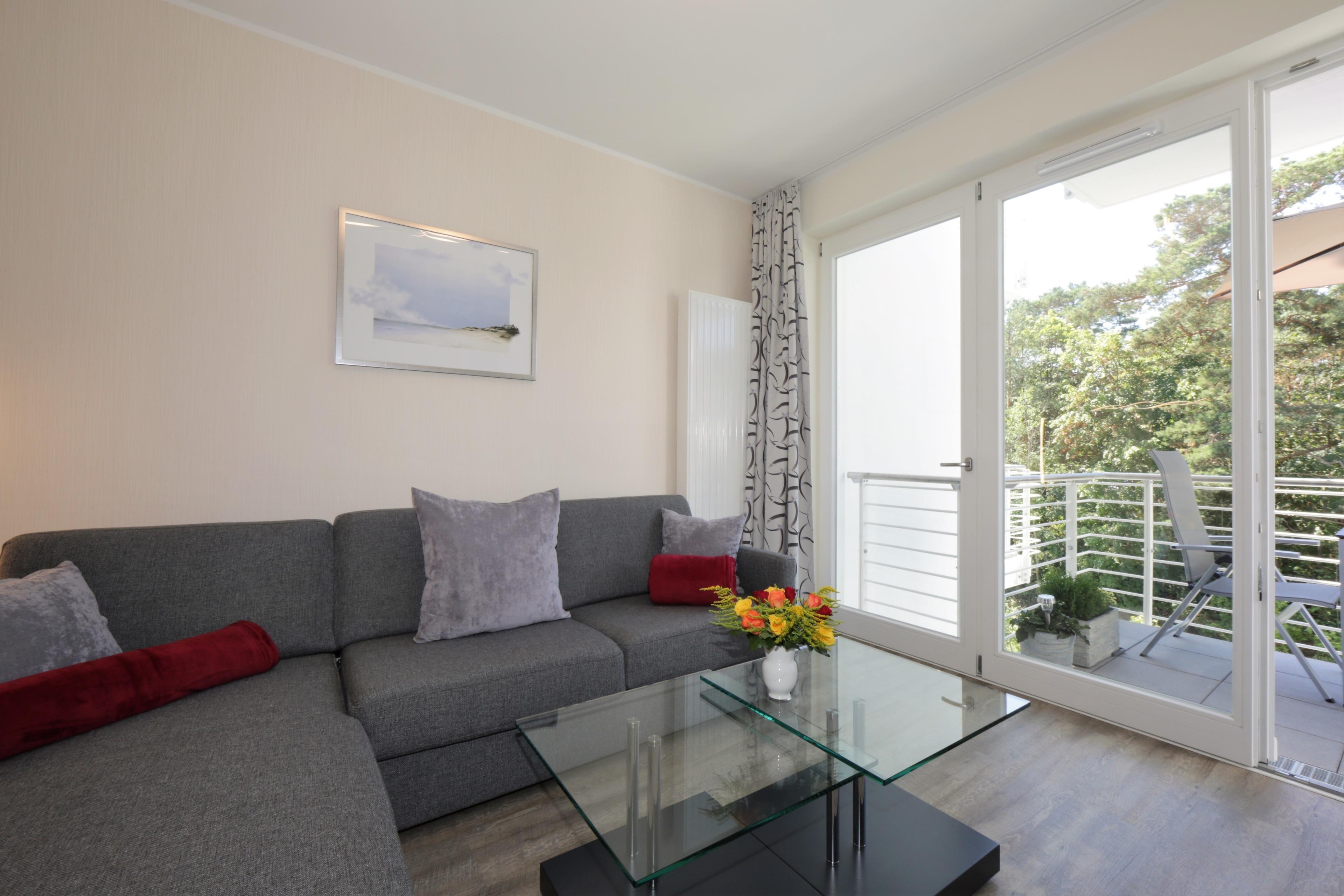 Modernes 2-Zimmer-Appartement in ruhiger Strandlage mit Balkon und Sauna direkt an der Ahlbecker Promenade.