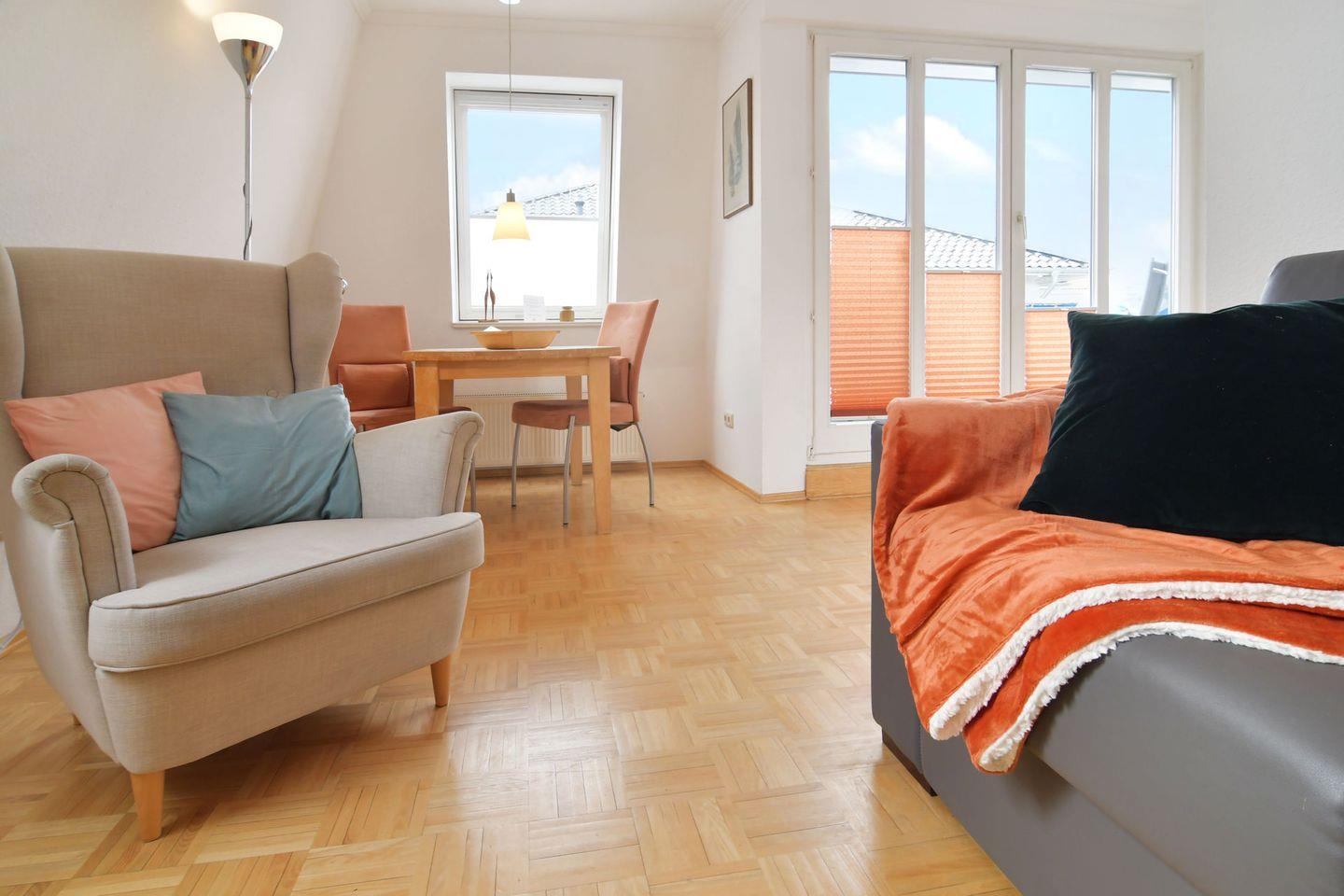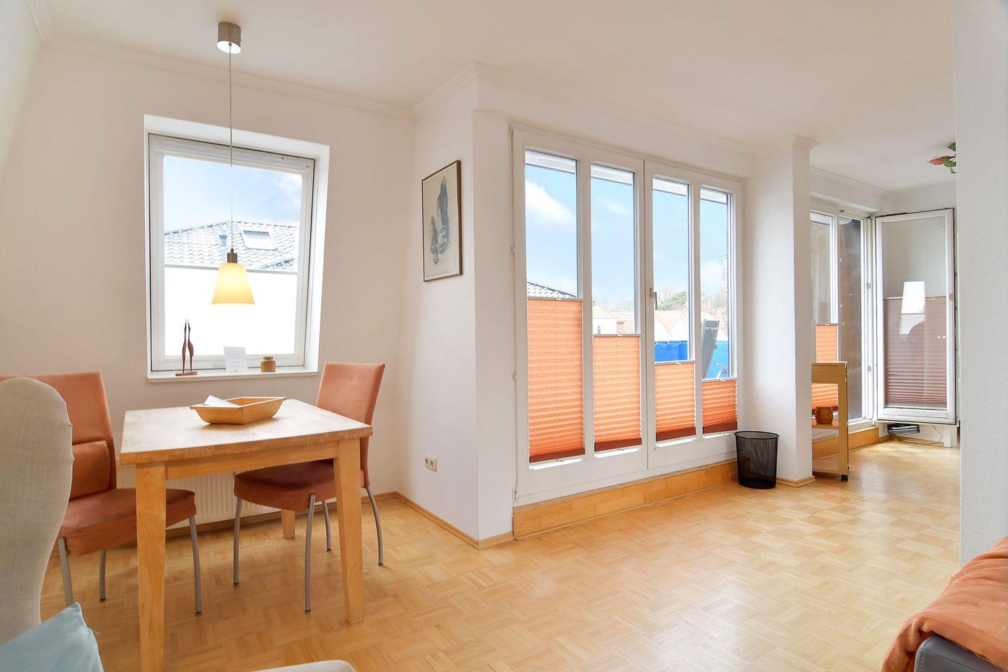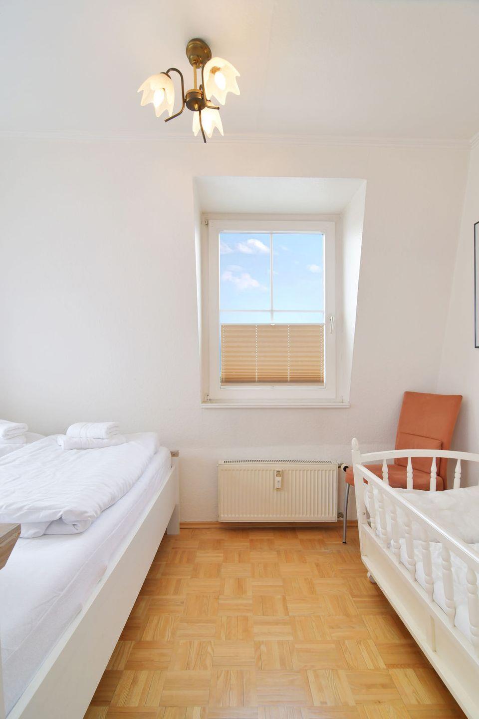 Dadurch bietet die Wohnung Platz für 3 Personen und ein Baby/Kleinstkind bis ca. 1 Jahr. Die Bettenkombination bietet die Möglichkeit auf 140 cm Breite zu zweit zu schlafen und eine dritte Person im Wohnzimmer auf 125 cm Breite oder aber Sie reisen zu zweit an und haben die Möglichkeit auch getrennt zu schlafen.