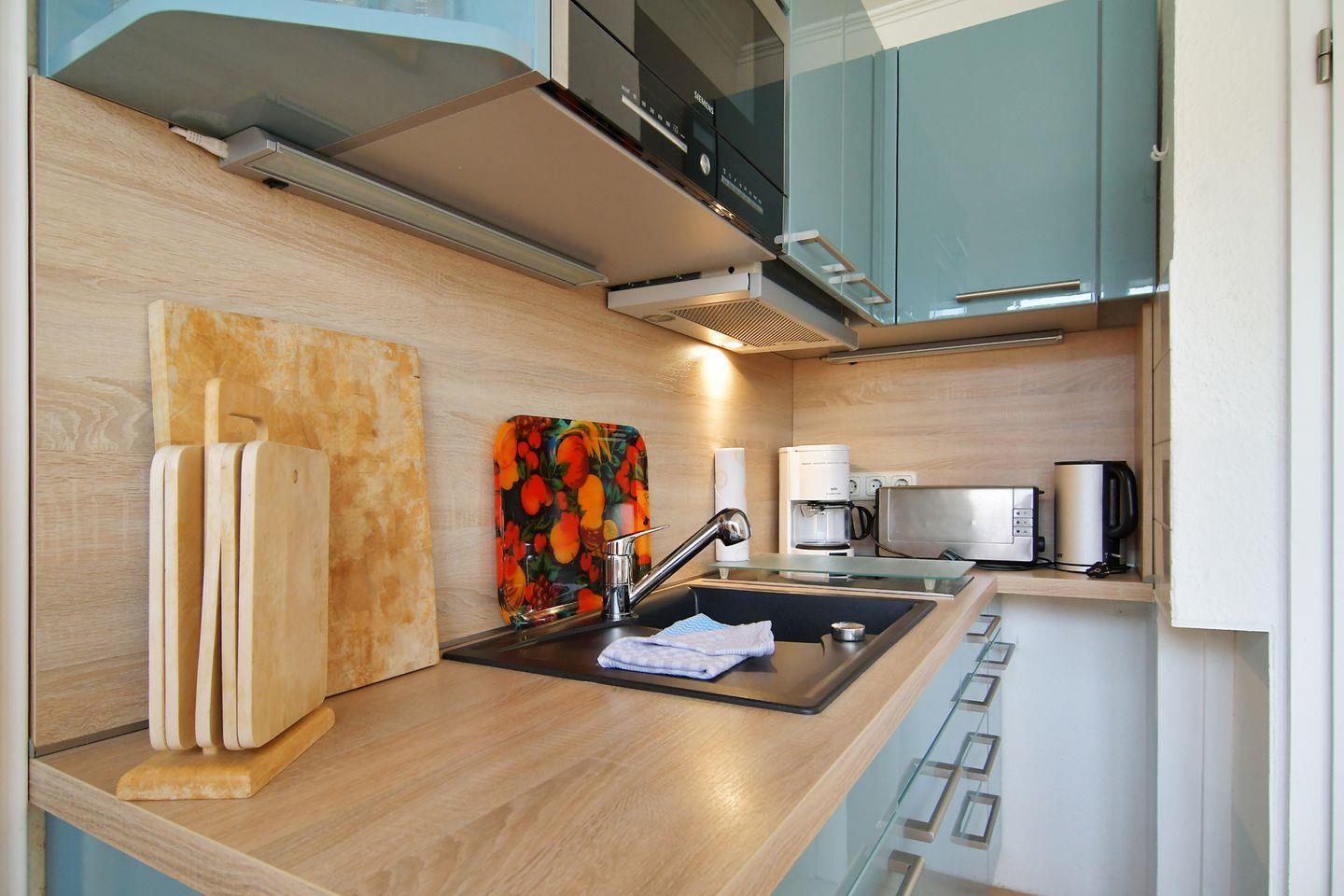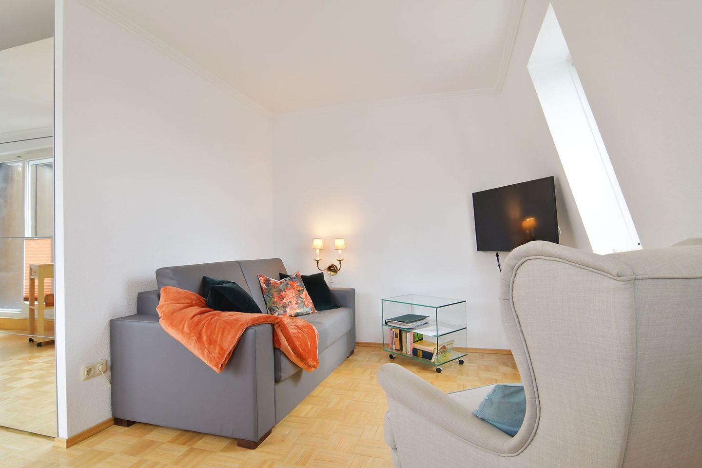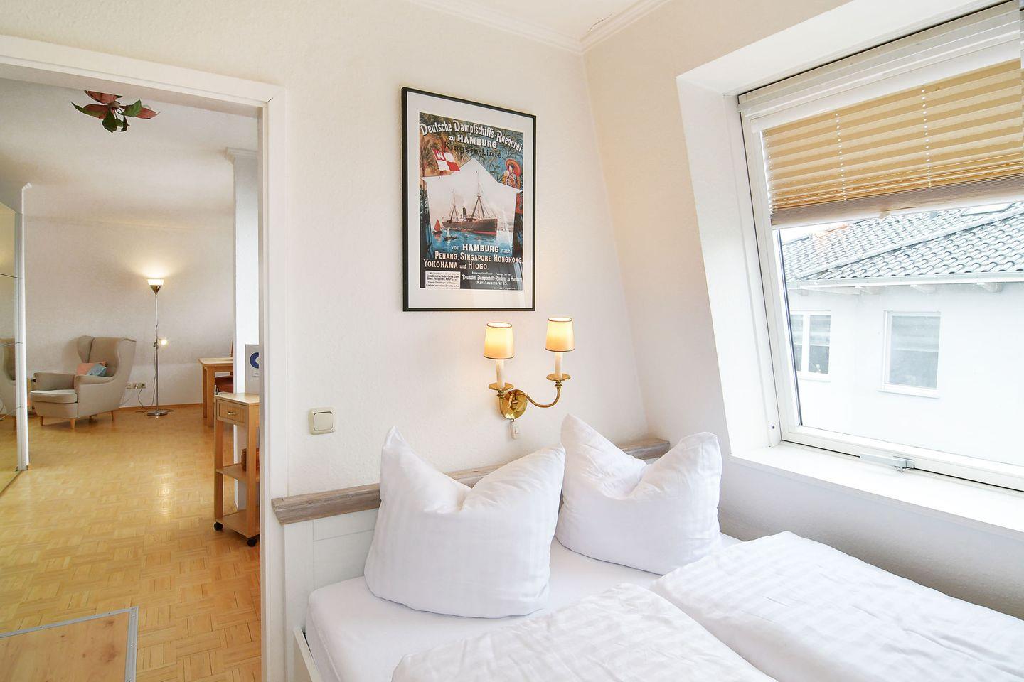Dadurch bietet die Wohnung Platz für 3 Personen und ein Baby/Kleinstkind bis ca. 1 Jahr. Die Bettenkombination bietet die Möglichkeit auf 140 cm Breite zu zweit zu schlafen und eine dritte Person im Wohnzimmer auf 125 cm Breite oder aber Sie reisen zu zweit an und haben die Möglichkeit auch getrennt zu schlafen.