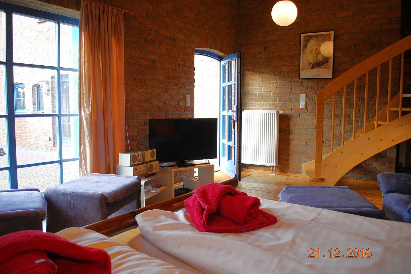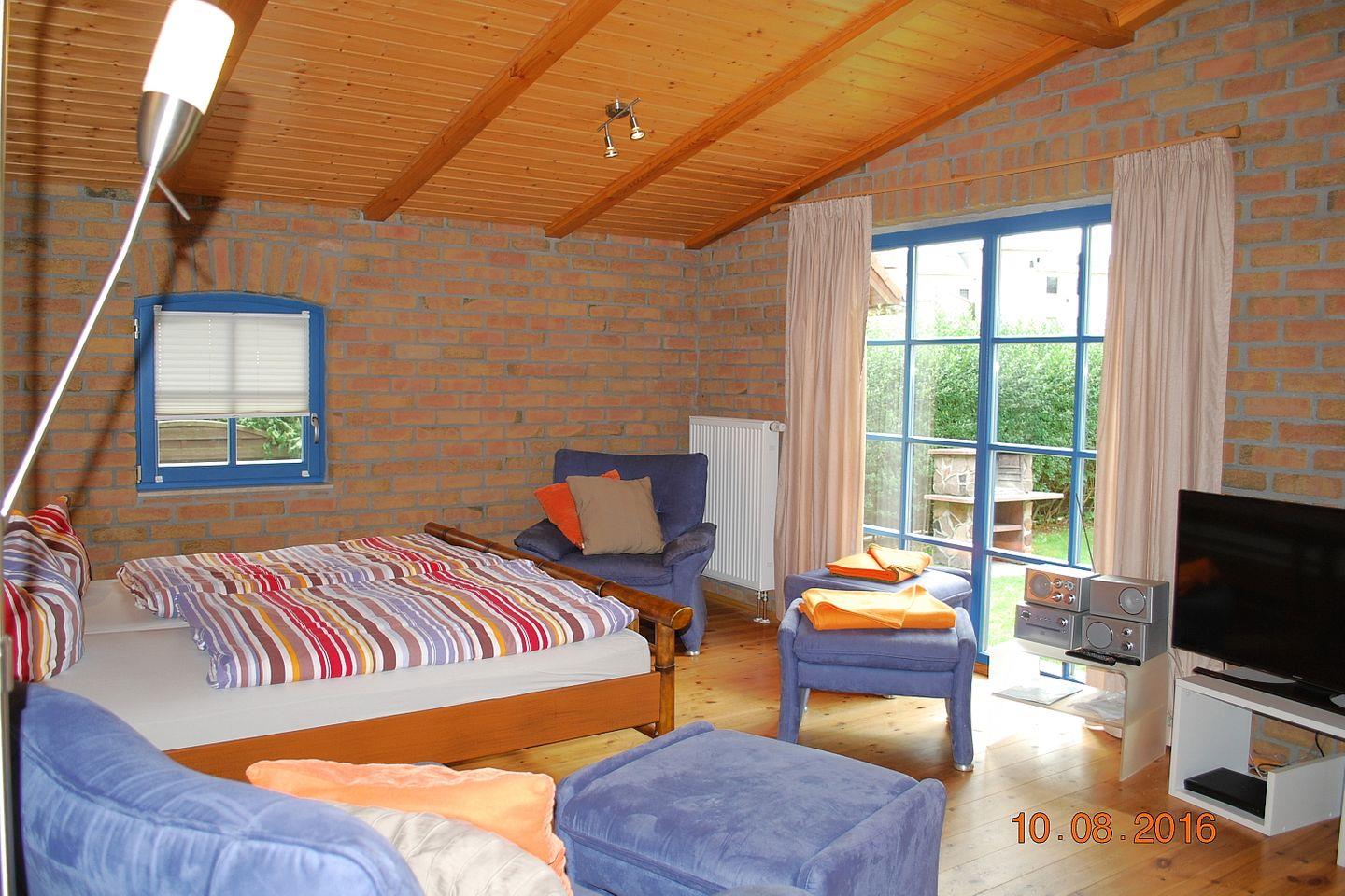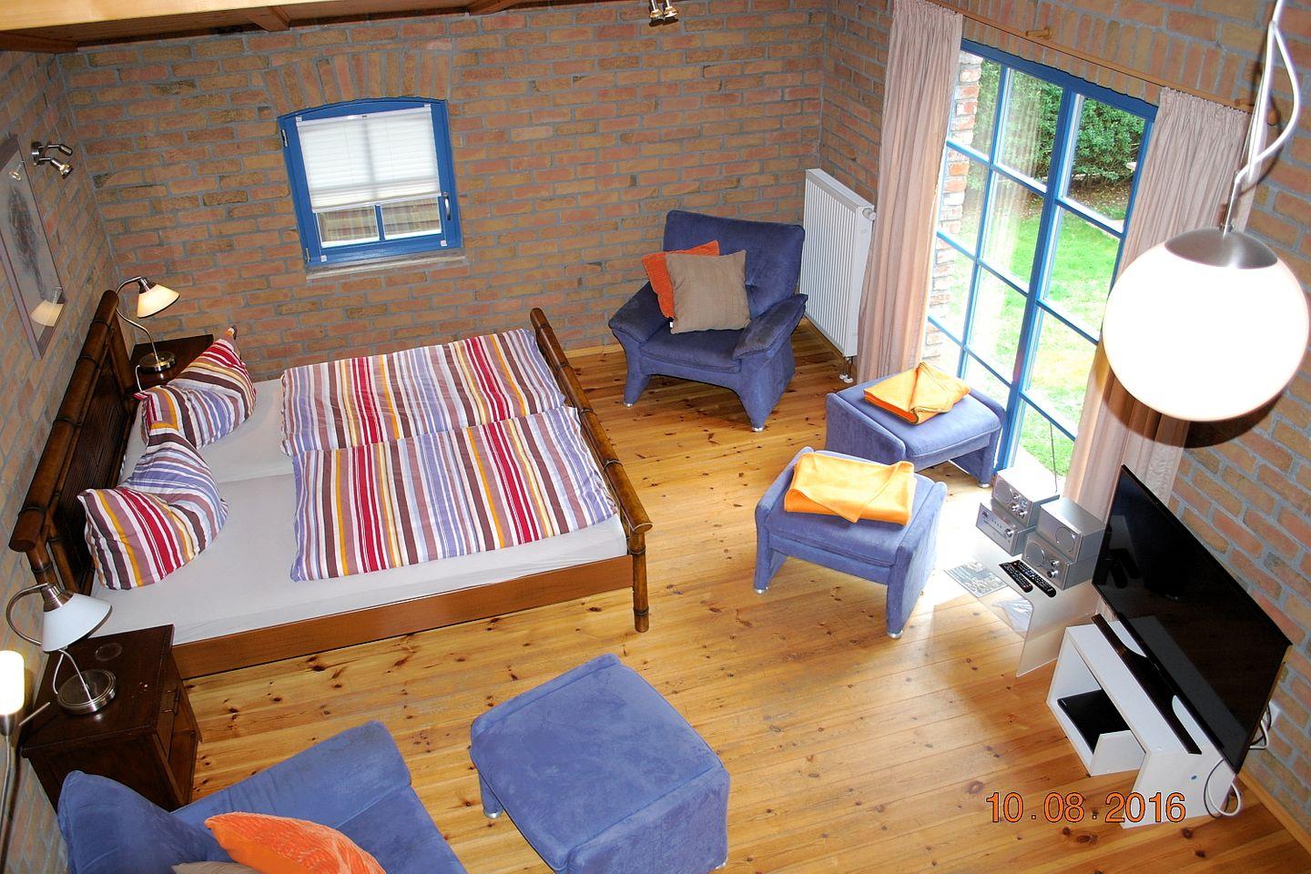 Der Anbau hat einen eigenen Zugang und verfügt neben einem Doppelbett auch über eine Teeküche. Haustiere sind auf Anfrage gestattet.