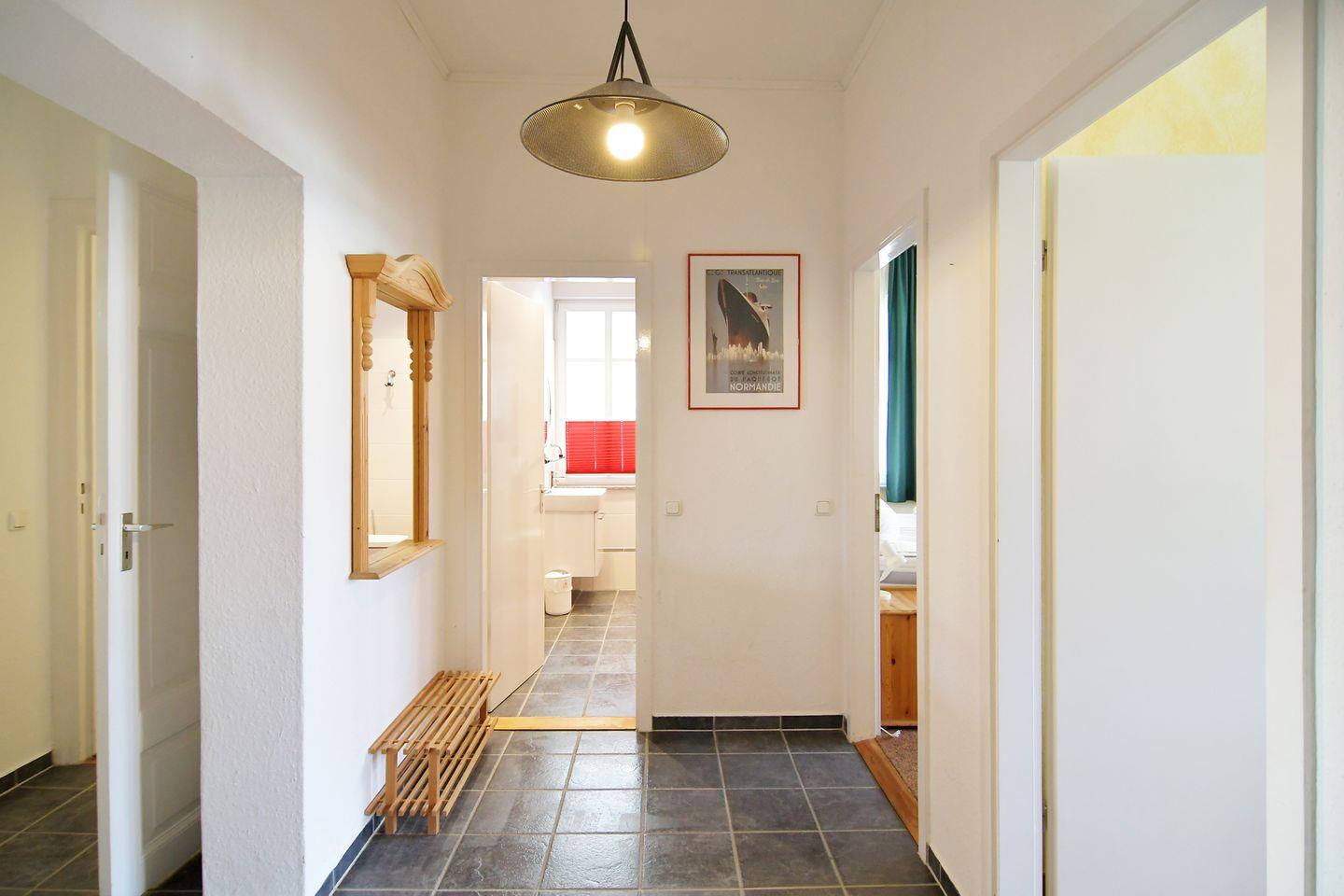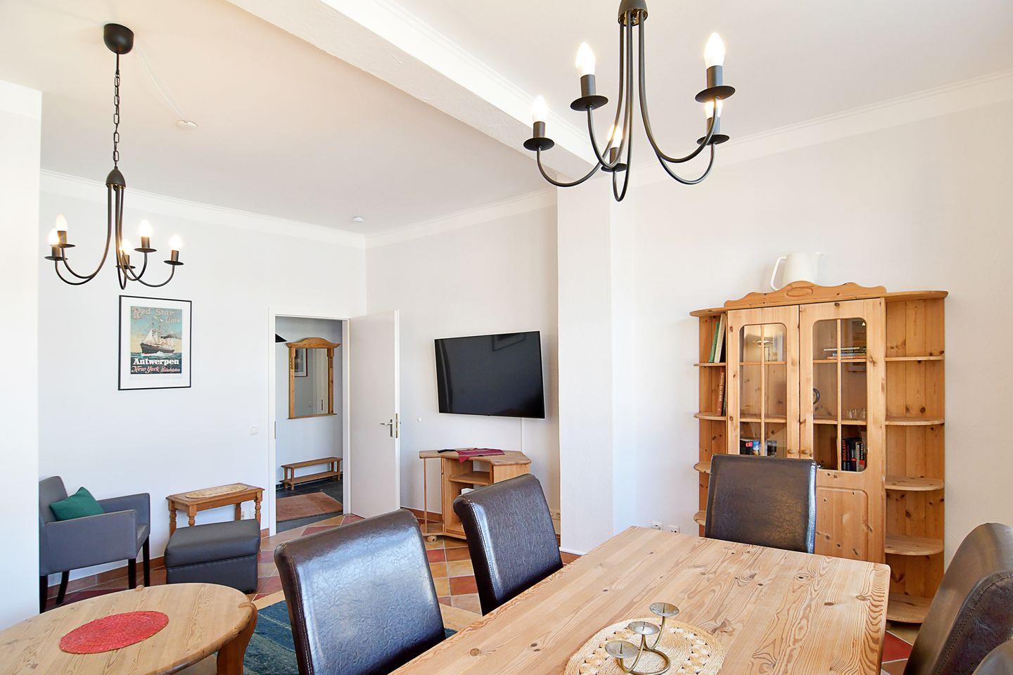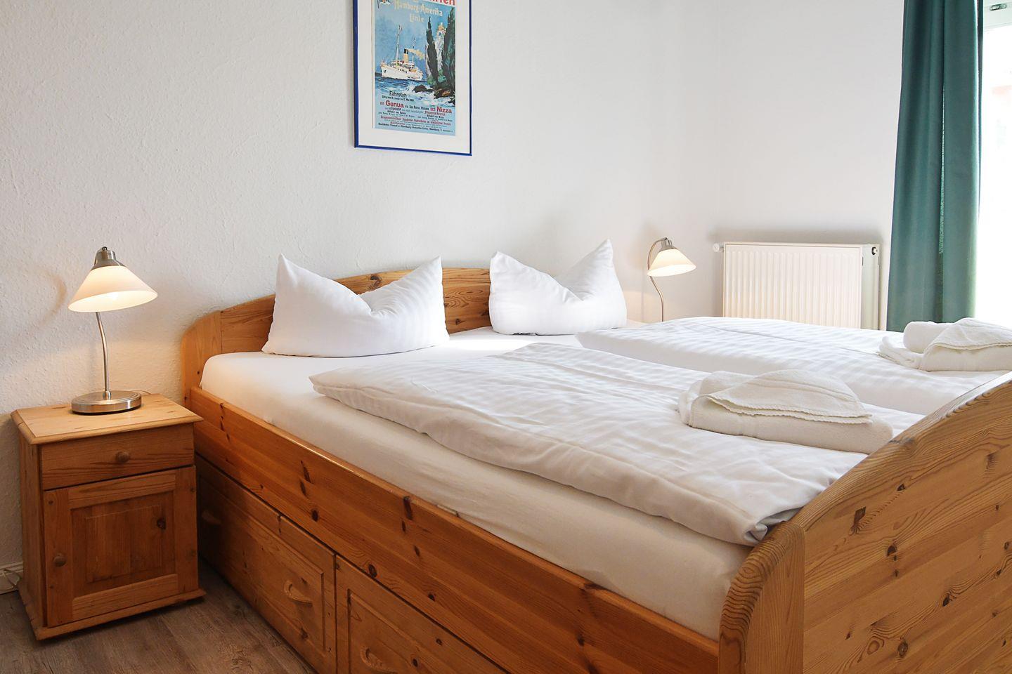 Die 90 m² große Wohnung 03 liegt im 1. OG der Villa Hamburg. Sie verfügt über zwei separate Schlafräume von denen der eine mit einem Doppelbett und der andere ebenfalls mit einem Doppelbett und zusätzlich mit einem Einzelbett und einem Kindergitterbett ausgestattet sind. Damit 6 Personen bequem ihren Urlaub hier verbringen können, gibt es im Wohnzimmer auch noch eine gute Schlafcouch (125x200cm) mit Lattenrost und Matratze. Zwei Duschbäder runden das Spektrum für eine große Familie oder Reisegruppe ab. Noch eine separate, voll ausgestattete Küche und ein großzügiger Wohnbereich dazu und fertig ist die Traumwohnung. Keine Traumwohnung ohne Balkon ? Sie haben recht - einen Balkon gibt es ebenfalls genauso wie kostenfreies Wlan und ein PKW Stellplatz im Carport. Haustiere sind auf Anfrage gestattet.