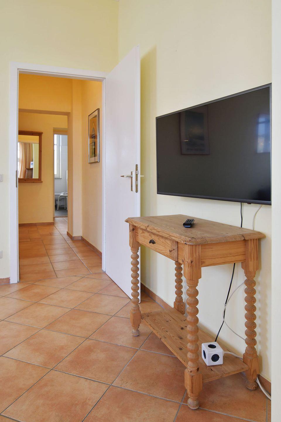 Das 55 m² große Appartement 04 befindet sich im 1. OG des Hauses. Ein großzügiger Wohn- und Essbereich, eine voll ausgestattete separate Küche mit Sitzplatz, ein Schlafraum (Doppelbett und Kindergitterbett) und ein modernes Duschbad kennzeichnen dieses Appartement mit eigenem Balkon. Ein PKW-Stellplatz und kostenfreies Wlan stehen zur Verfügung. Haustiere sind auf Anfrage gestattet.