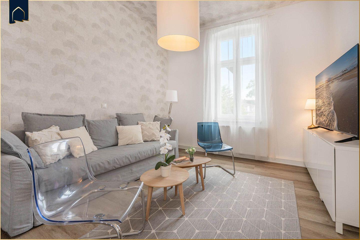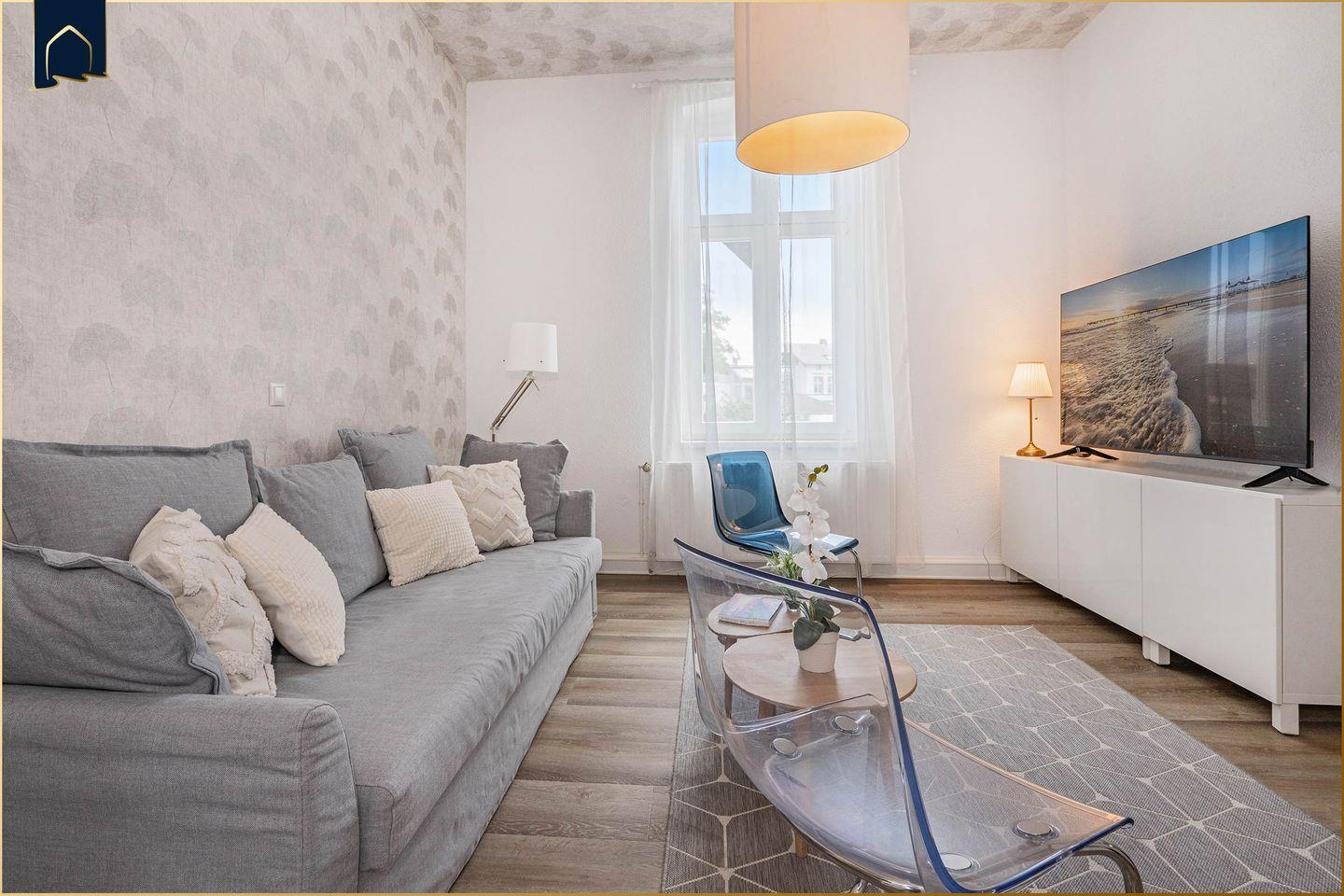 Großzügige Ferienwohnung in Ahlbeck, nur 100 Meter vom Strand entfernt, mit modernem Komfort und maritimem Flair.