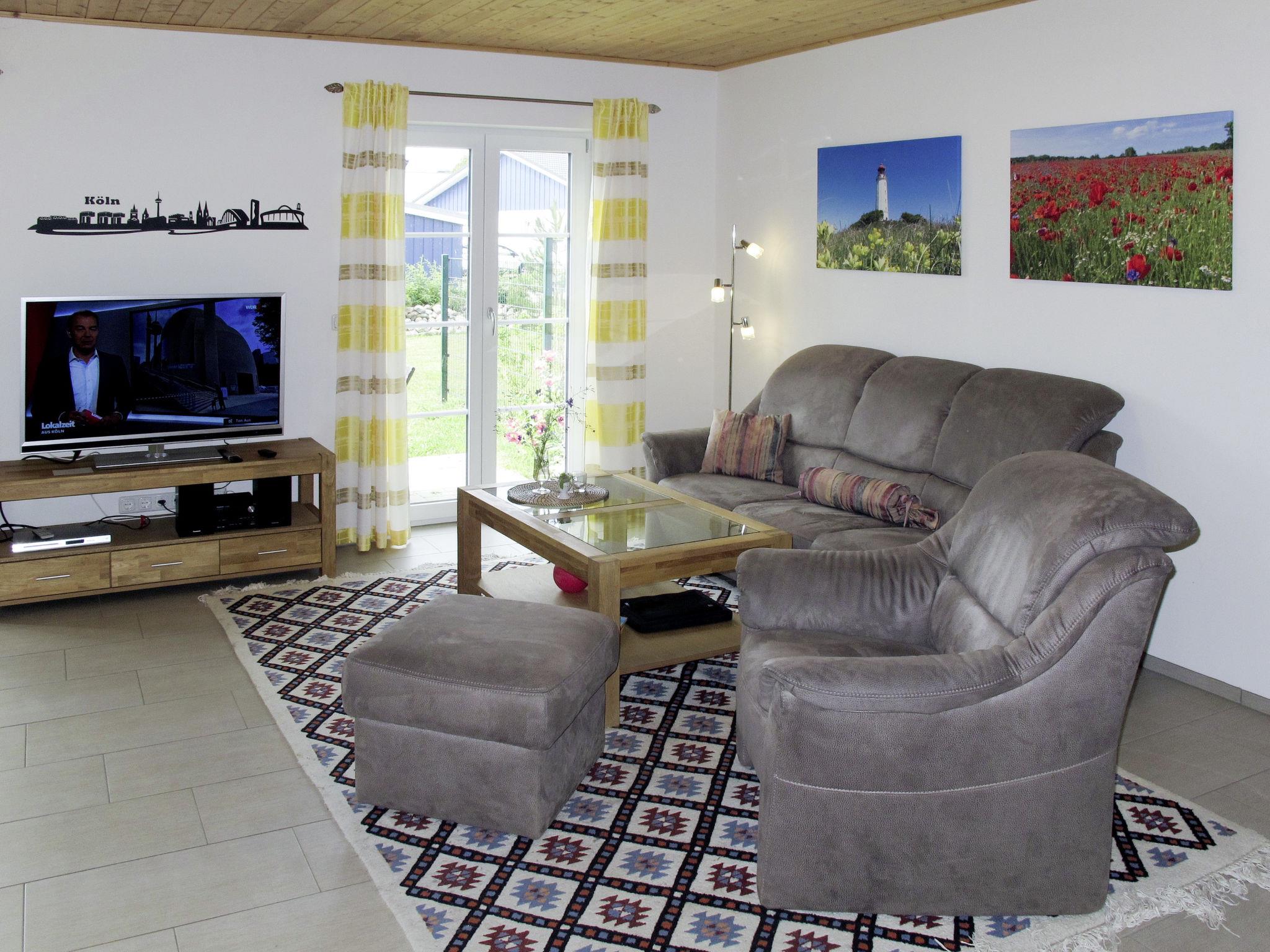 "Rügenperle", 3-Zimmer-Doppelhaushälfte 85 m2 auf 2 Stockwerken. Komfortabel und gemütlich eingerichtet: Wohn-/Esszimmer mit Schwedenofen, Sat-TV, Radio, CD und DVD. Ausgang zur Terrasse. Kochnische (Backofen, Geschirrspüler, 4 Glaskeramikplatten, Toaster, Wasserkocher, Mikrowelle, elektrische Kaffeemaschine). Dusche/WC. Obergeschoss: 1 abgeschrägtes Doppelzimmer mit Sat-TV. 1 abgeschrägtes Zimmer mit 2 Betten. Dusche/WC. G-Heizung, Fussbodenheizung. Terrasse, Südwestlage. Terrassenmöbel, Gartengrill (mobil). Zur Verfügung: Waschmaschine, Kinderhochstuhl, Babybett. Internet (Wireless LAN, gratis). Bitte beachten: Nichtraucher-Haus. Maximal 1 Haustier/Hund erlaubt. Rauchmelder. Buchungen sind nur zu touristischen Zwecken erlaubt.