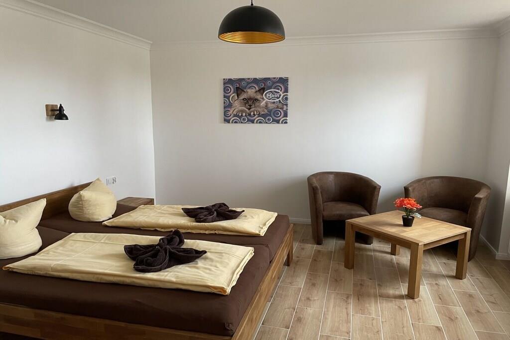 Auf gemütlichen 25 m² können hier 2 Personen einen preiswerten Urlaub verleben. Die Pantryküche gestattet Ihnen die Herstellung einfacher Speisen. Gern verwöhnen wir Sie auch mit unserem Frühstücksangebot. Sie haben die Möglichkeit im Gartenhäuschen zu sitzen oder sind in 1 Minute im herrlichen Kiefernwald.