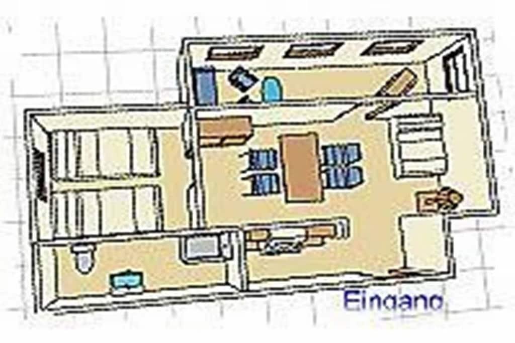 In der 1. Etage: (offene Küche(, Kochnische, Wasserkocher, Toaster, Kochherd, Kaffeemaschine, Kühlschrank, Tiefkühlschrank), Wohn/Esszimmer(Einzelbett, Esstisch), Schlafzimmer(, , Einzelbett, Einzelbett), Wintergarten(, TV, Stereoanlage)) , Badezimmer(, Toilette, Dusche, Waschbecken), Heizung, Garten(Gartenhaus), Parkplatz