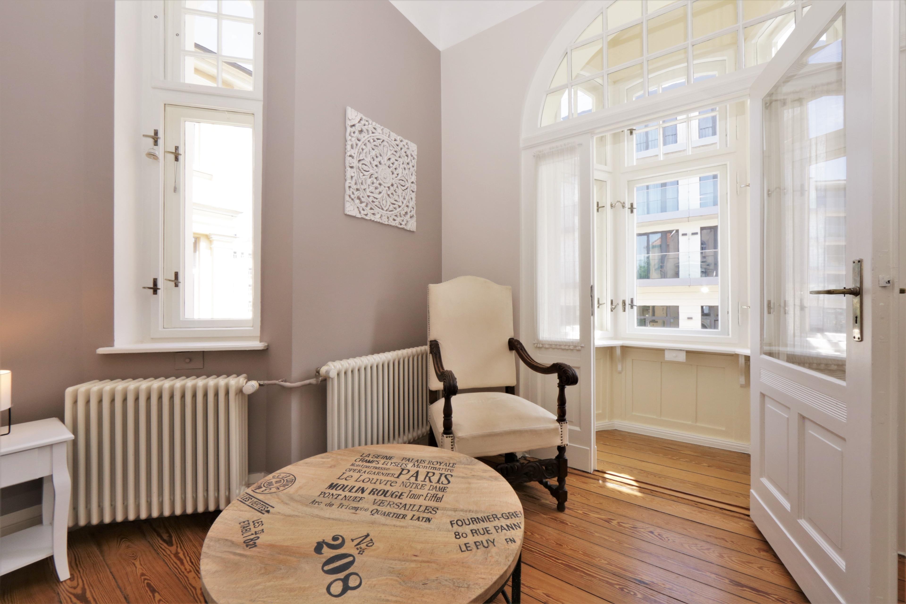 Dieses 135 qm große 4 Zimmer Appartement befindet sich im 1. Obergeschoss der Villa Noah. Hier können 2-8 Personen Ihren Urlaub ganz nah am Meer verleben. Bei der Einrichtung dieser Wohnung wurden geschickt die historischen Elemente der Bäderarchitektur mit modernem Design kombiniert. In der gesamten Wohnung ist der zeitlos schöne Dielenfußboden sehr gut erhalten. Im großzügigen Wohnraum finden Sie eine moderne Wohnlandschaft (mit Schlaffunktion 140 x 200) und einen großen Flat TV. Die Wohnküche, die vom Wohnraum und vom Flur begehbar ist, bietet den Gästen einen Essplatz für bis zu 8 Personen, der zu ausgiebigen geselligen Mahlzeiten einlädt. Die moderne Küchenzeile ist mit Kühlschrank, Geschirrspüler, Ceranfeld mit Backofen, Mikrowelle etc. ausgestattet. Alle Schlafräume sind jeweils mit einem Boxspringbett (2 Betten 160 x 200, 1 Bett 180 x 200) und einem Kleiderschrank eingerichtet, ein Schlafzimmer hat ein Bad en suite (Duschbad). Von einem der Schlafzimmer haben Sie Zugang zu einem kleinen Balkon, von dem aus Sie das Treiben auf der Bergstraße mit einem Morgenkaffe genießen können. Das zweite separate Badezimmer ist mit Dusche sowie Doppelwaschtisch/WC ausgestattet.