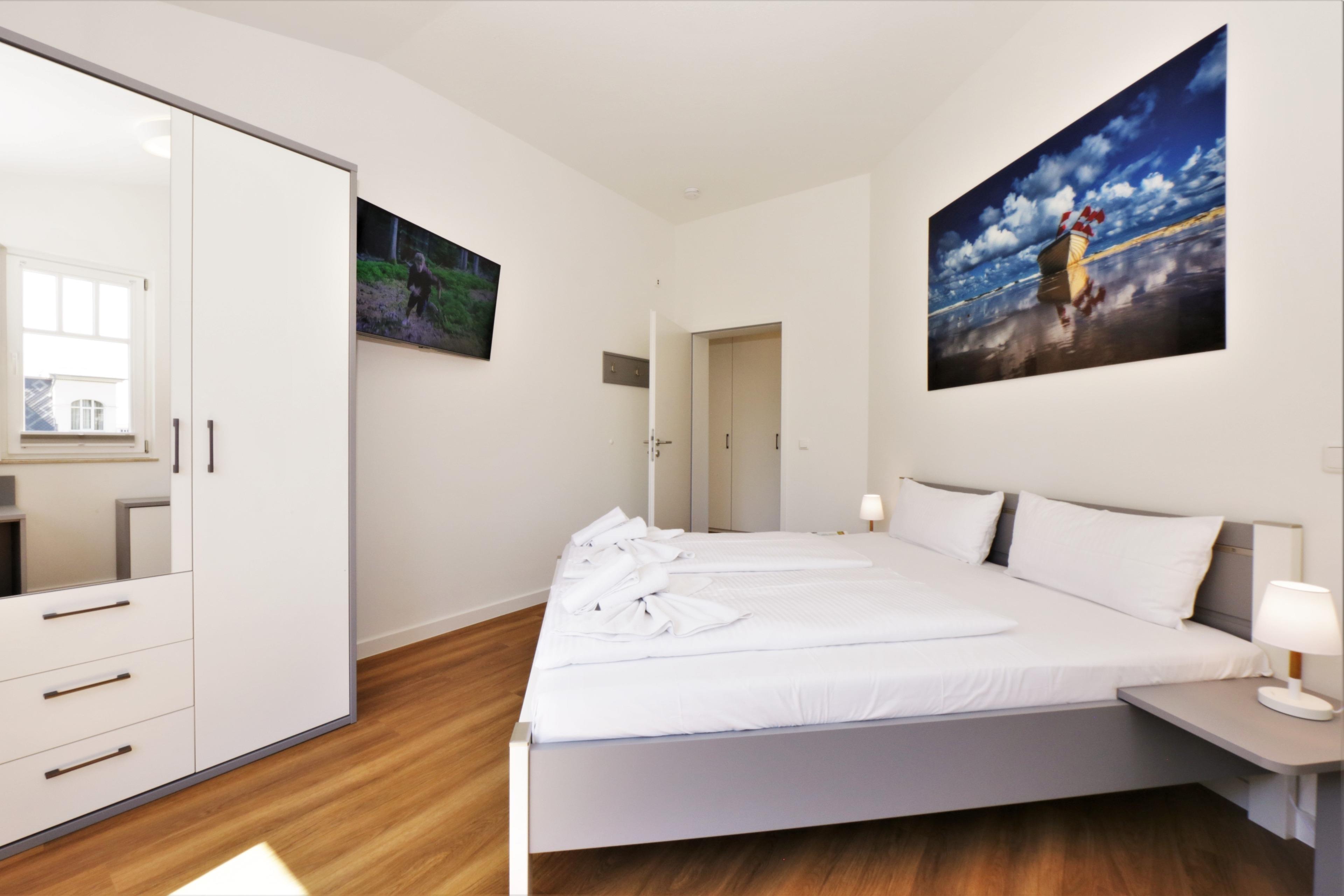 Diese modern eingerichtete 3-Zimmer Wohnung ist 67 qm groß und liegt im Erdgeschoss. Sie bietet 4 Personen viel Platz für einen erholsamen Ostseeaufenthalt. Der helle Wohnraum verfügt über eine Couch, Couchtisch und zwei gemütliche Sessel sowie einen großen Flat TV. Offen im Wohnraum integriert wurde die Vollküche incl. Geschirrspüler, Ceranfeld, Backofen, Mikrowelle, Kühlschrank etc. Der Essplatz am Fenster lädt zu gemeinsamen Mahlzeiten ein. Auf dem überdachten ebenerdigen Balkon zum Süden, der von einem der Schlafzimmer begehbar ist, ist Sonne garantiert. Die Schlafzimmer sind jeweils mit einem komfortablen Doppelbett mit getrennten Matratzen (90 x 200), ausreichend Schrankraum und Kofferablage eingerichtet. Ein Schlafzimmer bietet den Gästen einen zusätzlichen Flat-TV. Das Bad mit Fenster ist sowohl mit Badewanne als auch mit Dusche und Waschtisch/WC ausgestattet. Ein Pkw-Stellplatz, der der Wohnung zugeordnet ist, steht den Gästen am Haus zur Verfügung. Der Fahrradraum, als auch Waschmaschine und Trockner im Keller, kann von den Gästen genutzt werden.