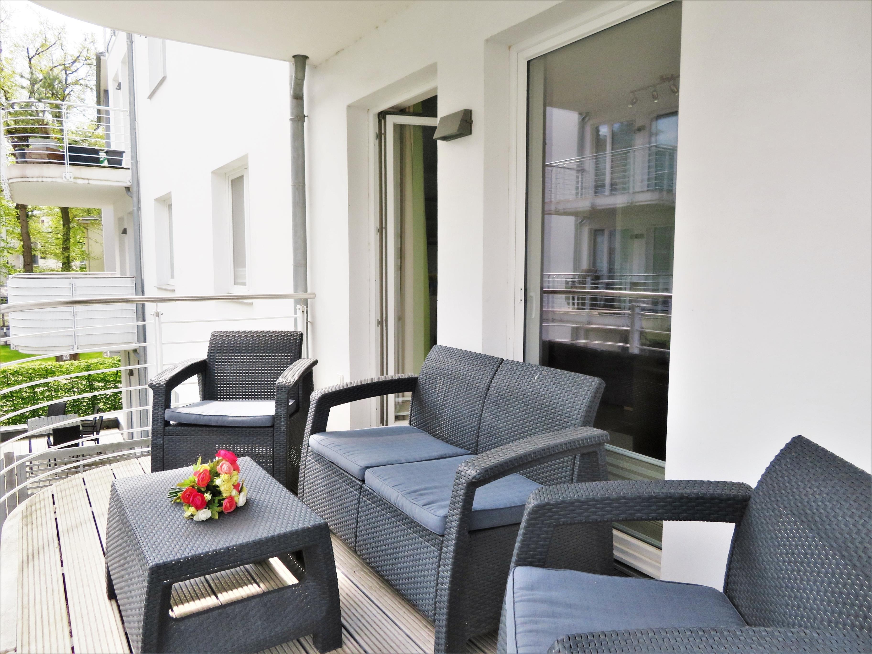 Modernes 2-Zimmer-Appartement mit Balkon, Strandkorb und Tiefgaragenplatz in Seebad Bansin, nur 20 m vom Strand entfernt.