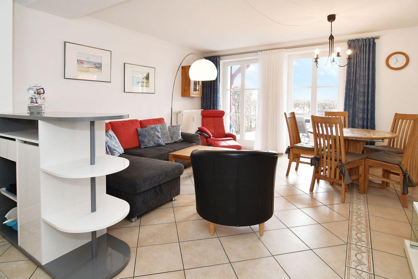Die 55 m² große Ferienwohnung 02 befindet sich im Erdgeschoss des Hauses und verfügt über einen gemütlichen Wohnraum mit voll ausgestatteter Küchenzeile und Essplatz, zwei Schlafzimmer (Doppelbetten und im großen Schlafraum ein Kindergitterbett und ein Wickeltisch für die kleinen Gäste), eine sonnige und umgrünte Terrasse mit Westlage und ein Duschbad. Erhöhte Betten in den Schlafräumen zum bequemen Ein- und Aussteigen. Das Appartement ist Allergikergeeignet. Kostenfreies WLan und ein eigener PKW-Stellplatz gehören ebenfalls zur Ausstattung. Im Haus befinden sich Waschmaschinen und Trockner und eine geräumige Sauna. Die perfekte Lage direkt an der Promenade ist nur einen Fußsprung vom Strand und der Ostsee entfernt. Haustiere sind leider nicht gestattet.