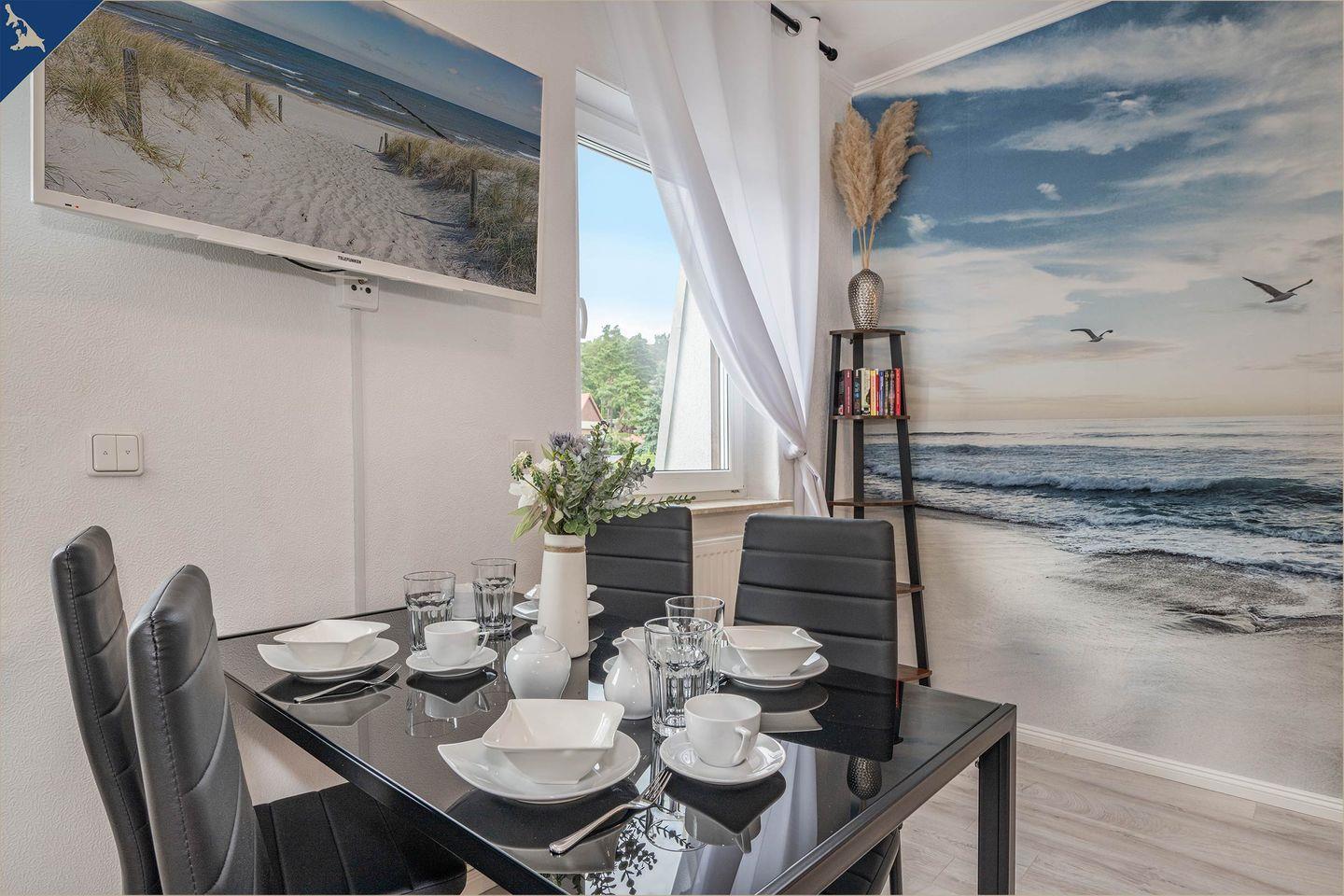Diese charmante Ferienwohnung mit 65?m² Wohnfläche ist der perfekte Rückzugsort für Familien oder Paare, die auf Usedom entspannte Tage verbringen möchten. Mit zwei gemütlichen Schlafzimmern, einem modernen Badezimmer mit Dusche und einem großzügigen Wohn- und Essbereich bietet die Wohnung Platz für bis zu 4 Personen. Die Unterkunft befindet sich in ruhiger Lage – direkt am Waldrand und dennoch nur 1.000?m vom Strand entfernt.