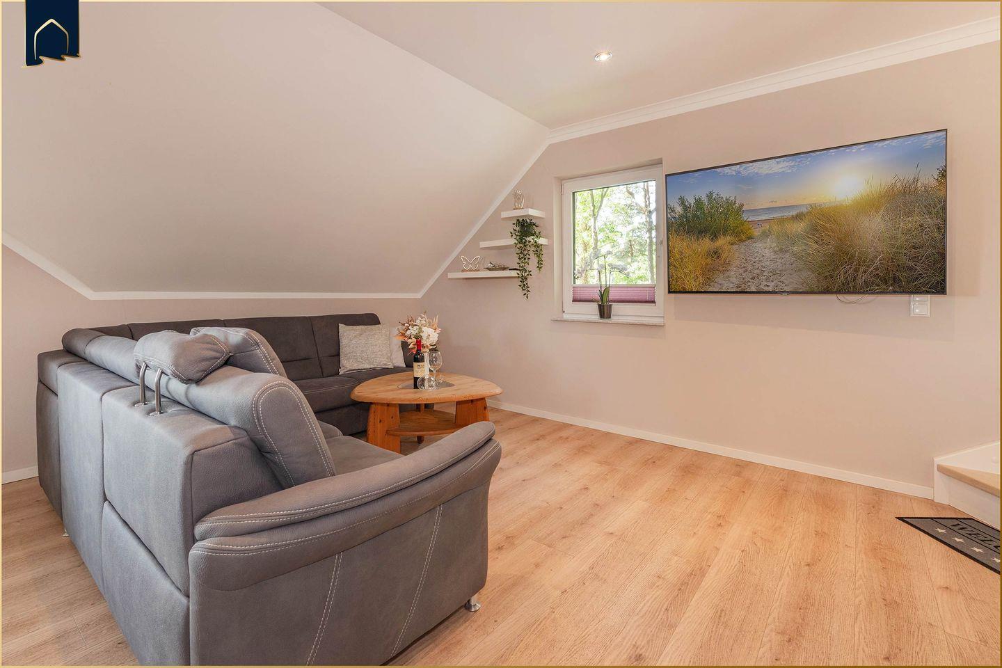 Willkommen in diesem stilvollen Appartement in einem ruhigen Dorf auf Usedom – perfekt für Familien, Paare oder kleine Gruppen. Auf großzügigen 100?m² erwarten Sie zwei gemütliche Schlafzimmer, ein modernes Badezimmer mit Dusche und Badewanne sowie ein offener Wohnbereich mit Sofaecke, TV und Kaminofen – ideal für entspannte Abende. Die voll ausgestattete Küche mit Spülmaschine, Backofen, Mikrowelle und Gefrierfach lässt keine Wünsche offen. Die Unterkunft bietet Platz für bis zu vier Personen und überzeugt durch durchdachte Details wie Fußbodenheizung, WLAN, Esstisch, Ganzkörperspiegel und Sichtschutz an allen Fenstern.